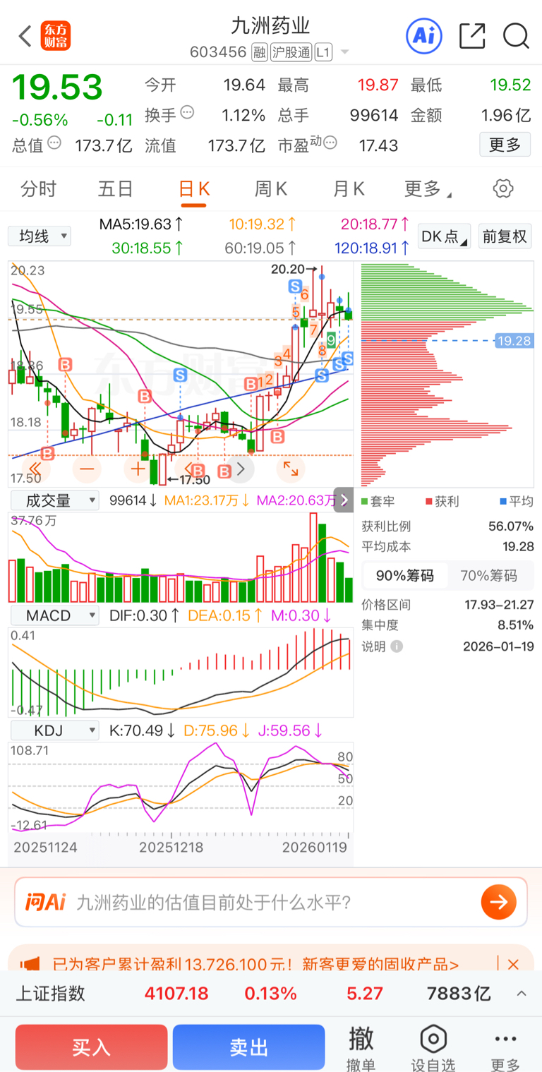 $九洲药业(SH603456)$ 每次冲高回落,只能这样了