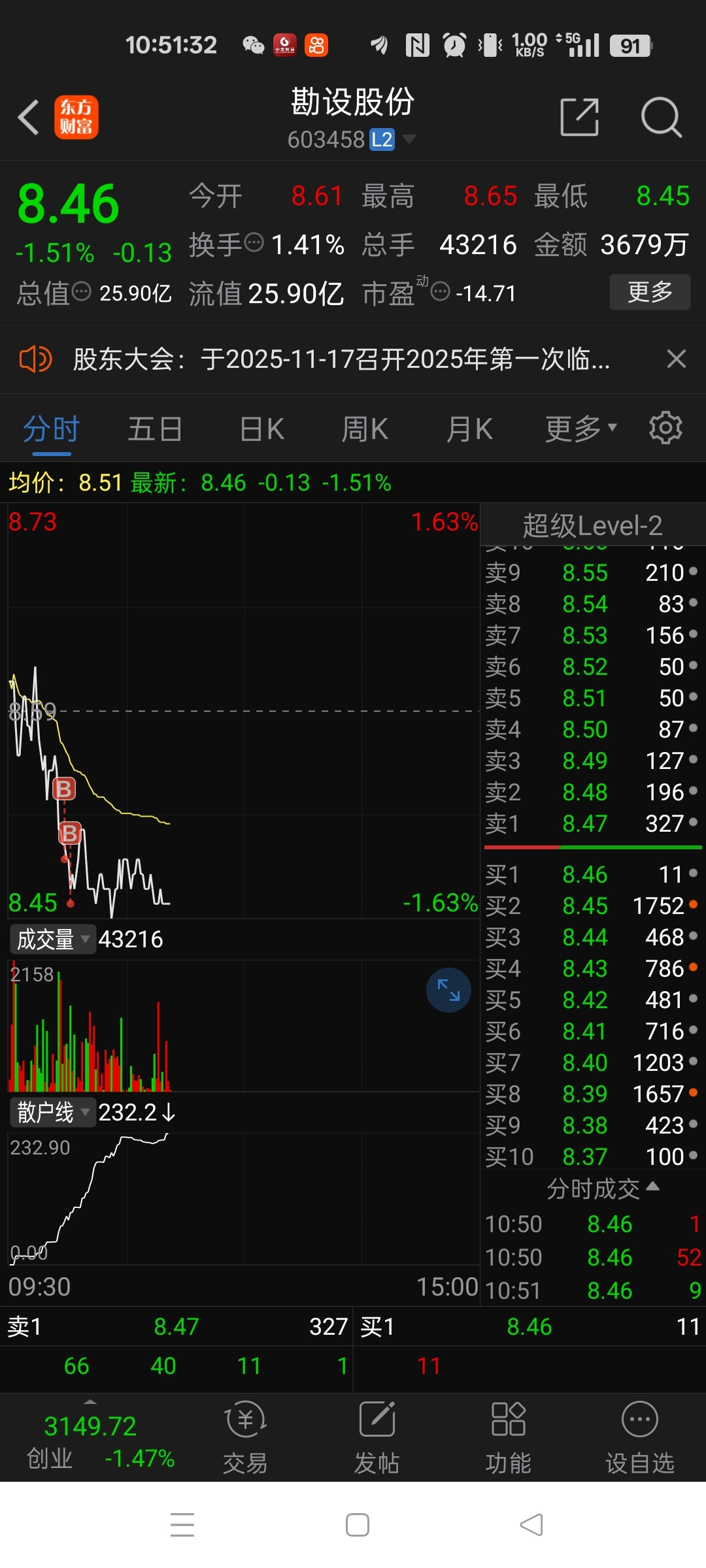 $勘设股份(SH603458)$ 我来啦,好像早了一点。。。