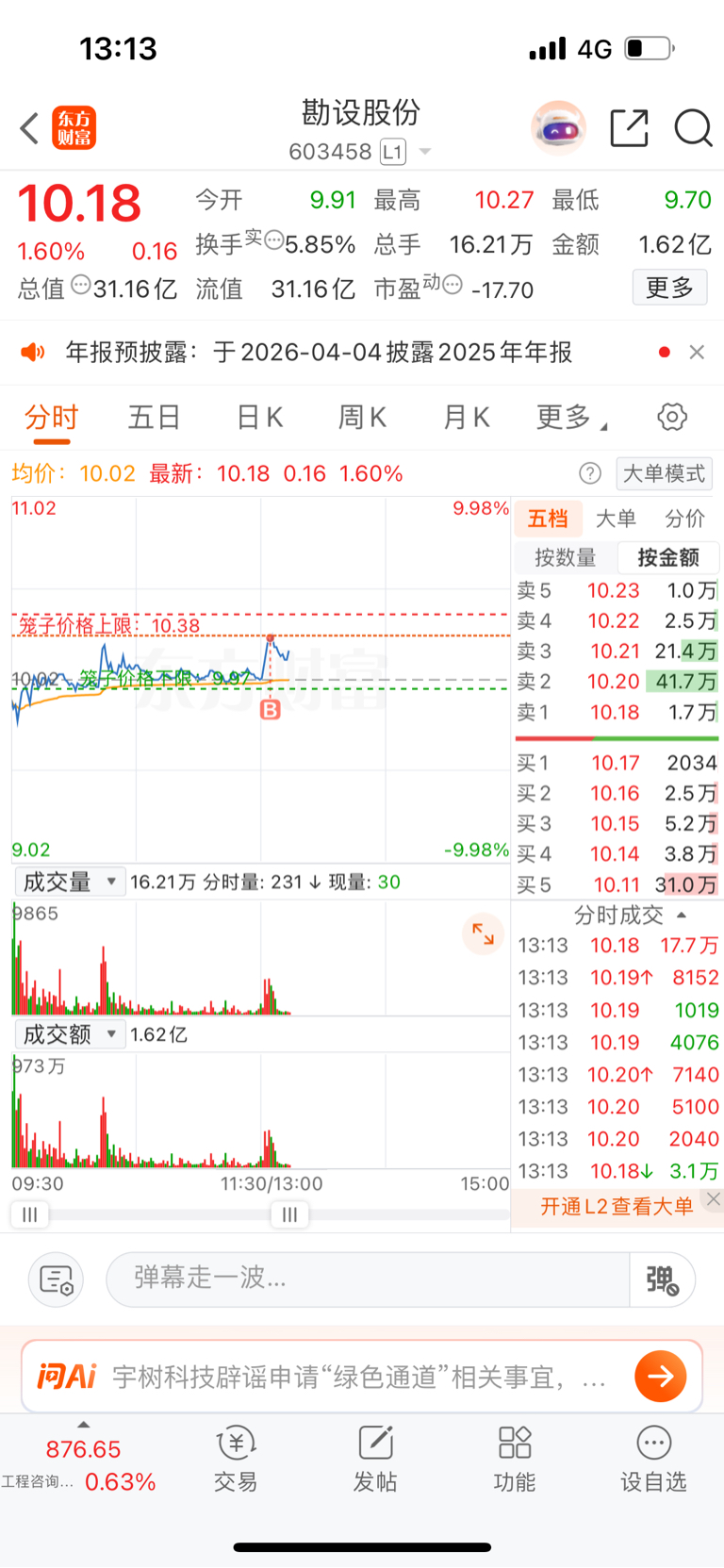 $勘设股份(SH603458)$ 我入了,请你发力,谢谢