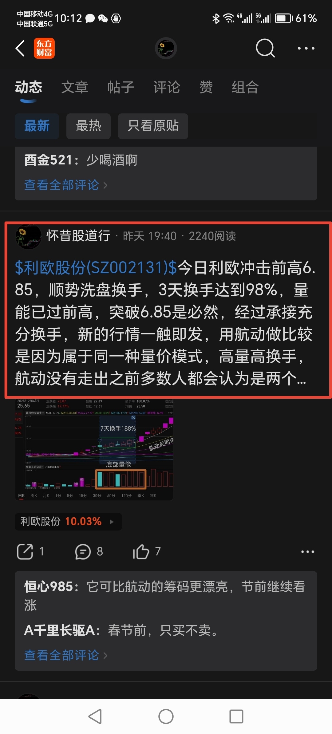 温馨提示: 1.根据《证券法》规定,禁止编造、传播虚假信息或者误导性信息,扰乱证券市场;2.用户在本社区发表的所有资料、言论等仅代表个人观点,与本网站立场无关,不对您构成任何投资建议。用户应基于自己的独立判断,自行决定证券投资并承担相应风险。《东方财富社区管理规定》