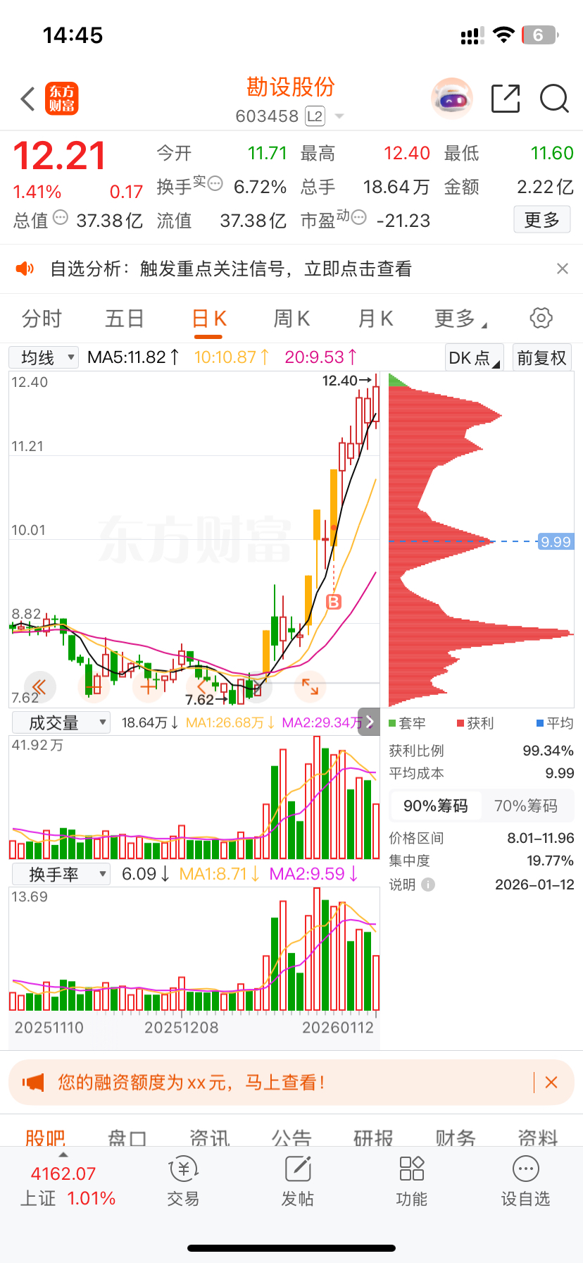 $勘设股份(SH603458)$ 跑了,吃20个点,主力你玩去吧