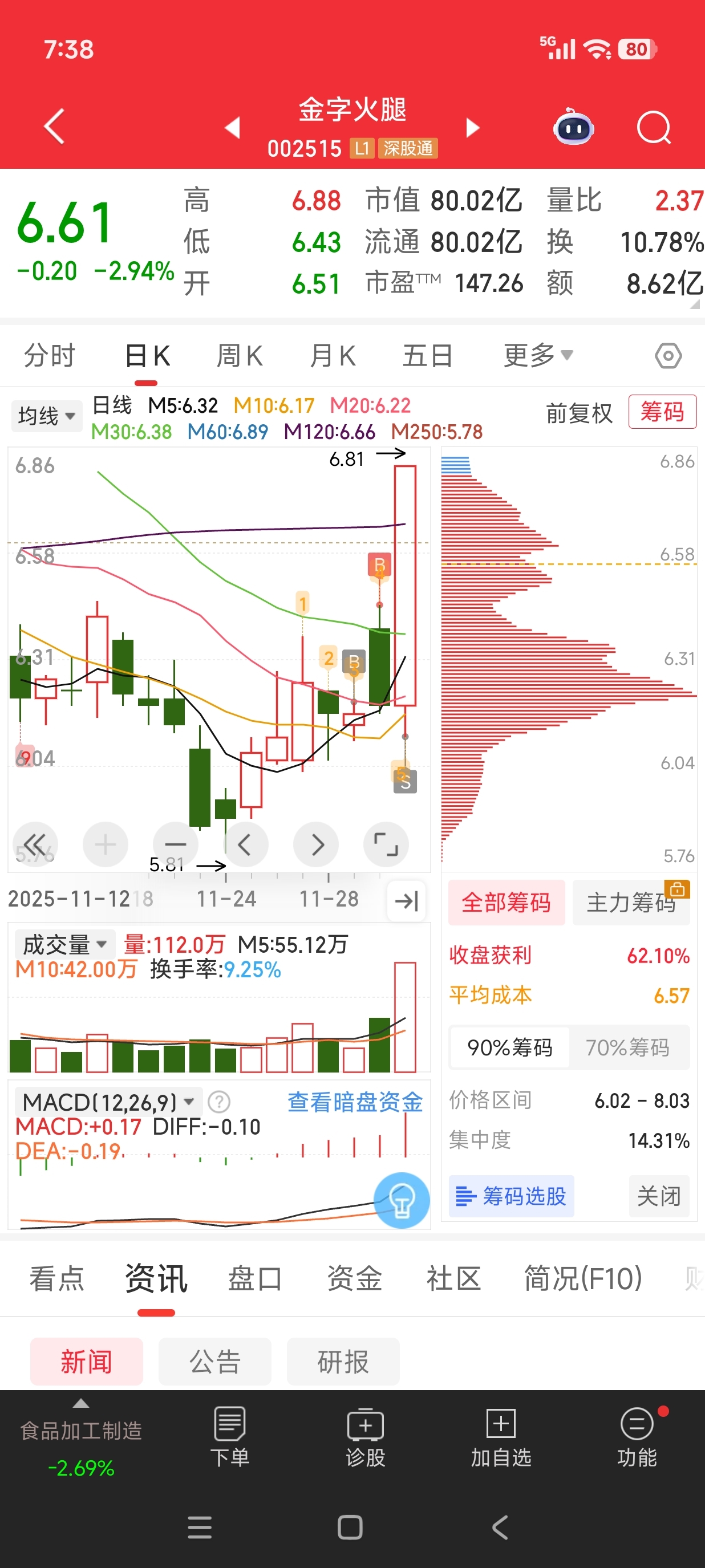 幸好1号把换金字火腿,股性太差,几天放量就涨3个点,穷庄股