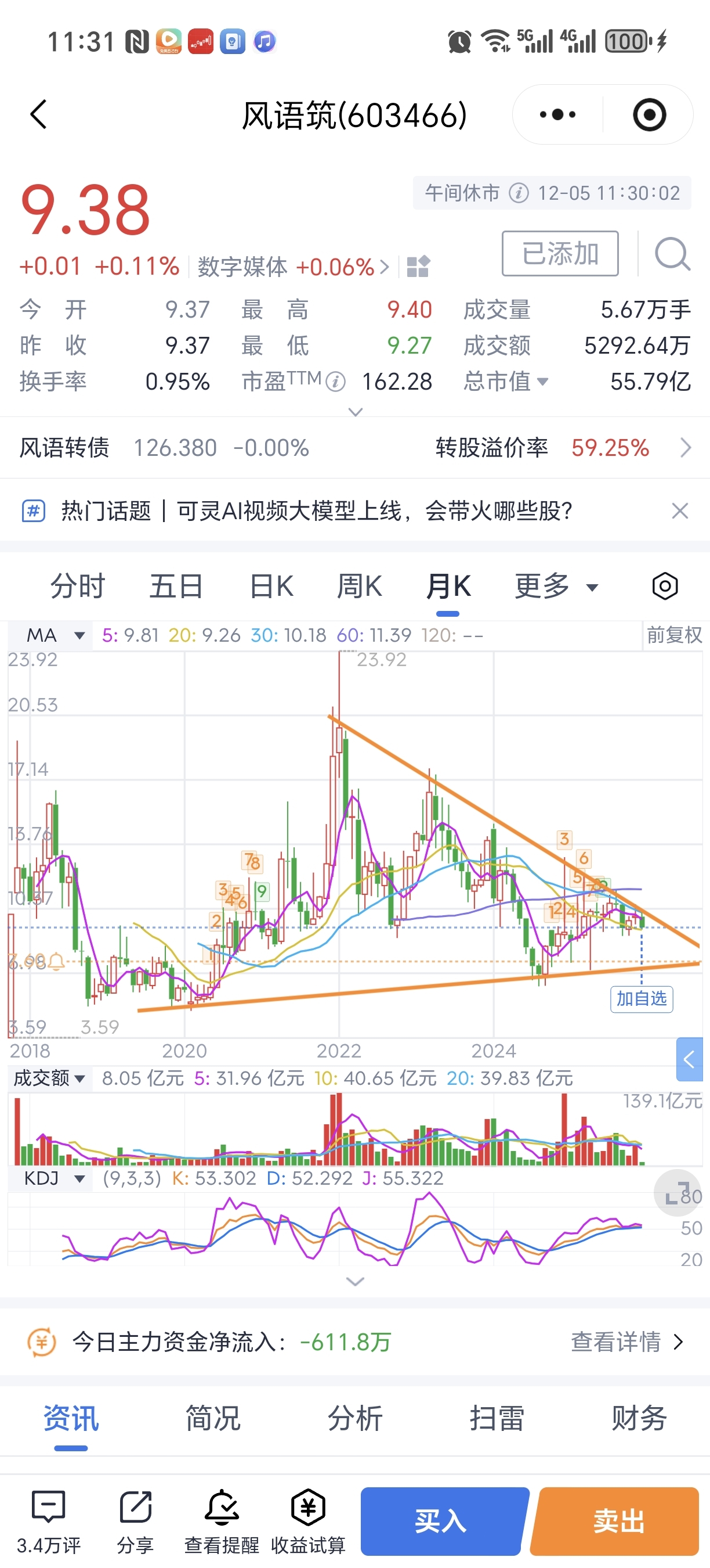 $风语筑(SH603466)$ 趋势线承压,目前并没有突破迹象,不适合盲目进场,要么等放量突破趋势线回踩不破再考虑进场,要么就可能是大跌向下,激进党8块以下抄底,保守派7.60以下抄底,个人认为向下概率大,因为A股12-春节普遍杀多,历史12月-春节股市概率暴跌大于90%,每年年底A股基本都是暴跌状态,个股不可避免。