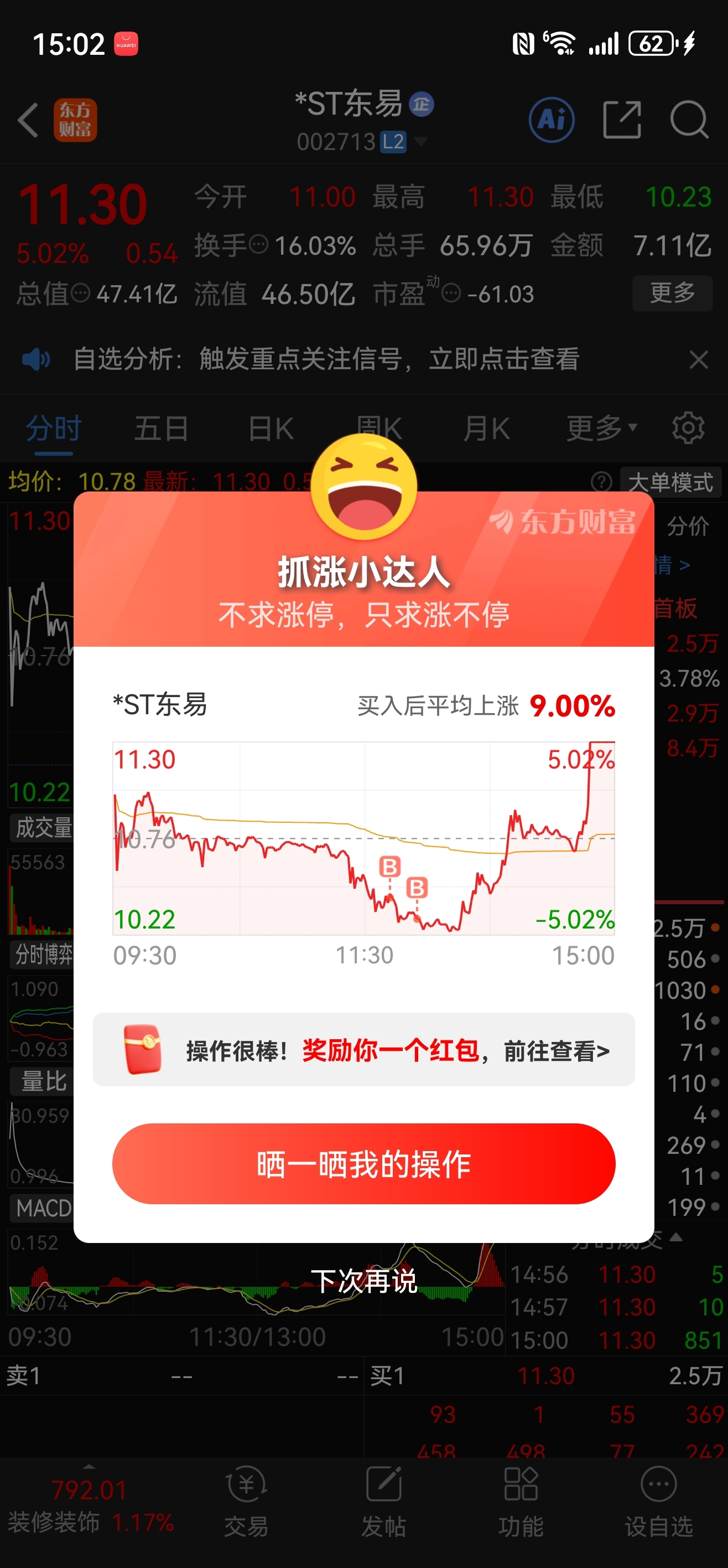 $风语筑(SH603466)$ 你是我见过最的,另外两个个股,一个一字,一个地天,你真是搞笑