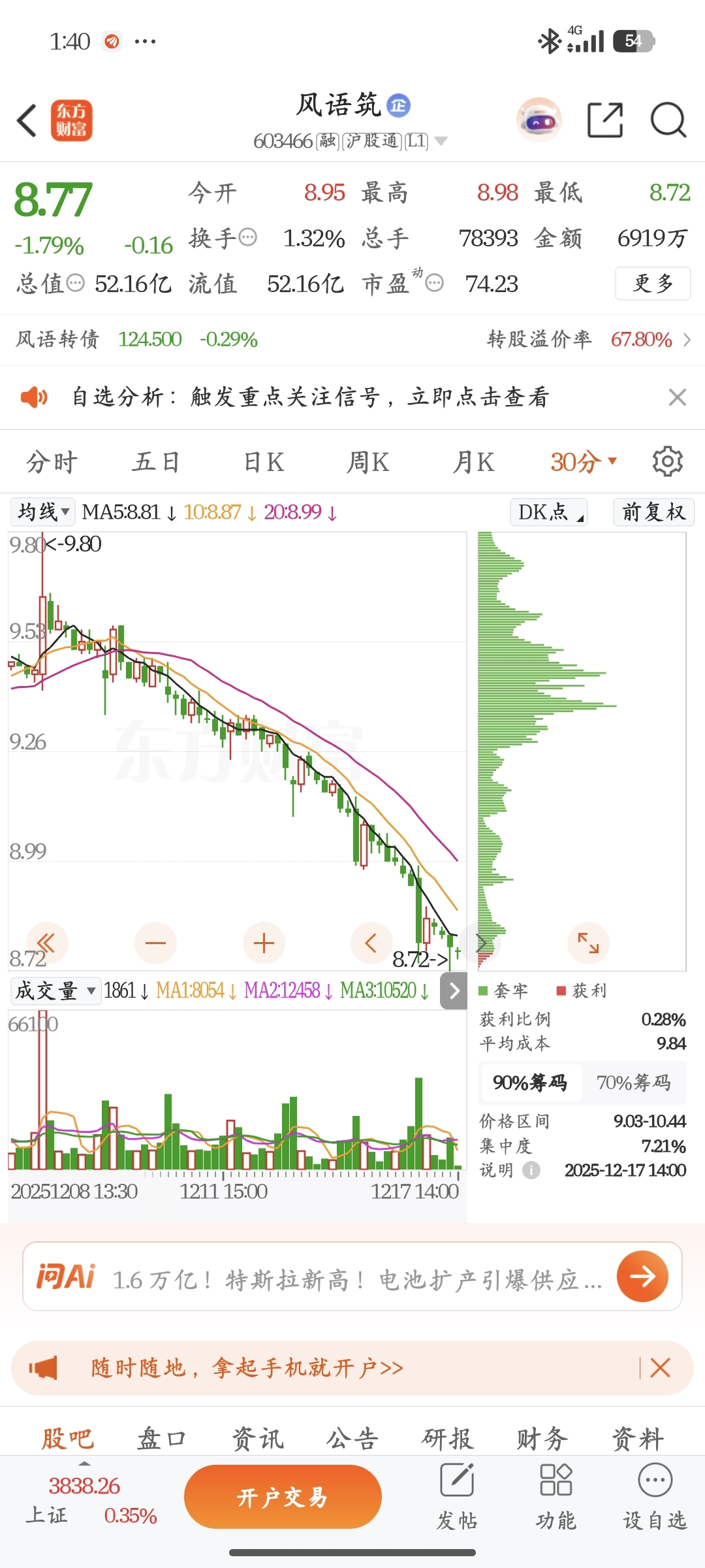 $风语筑(SH603466)$ 就这30分线完全没有一点止跌意思,你抄底,主力抄你家,抄底都是勇士
