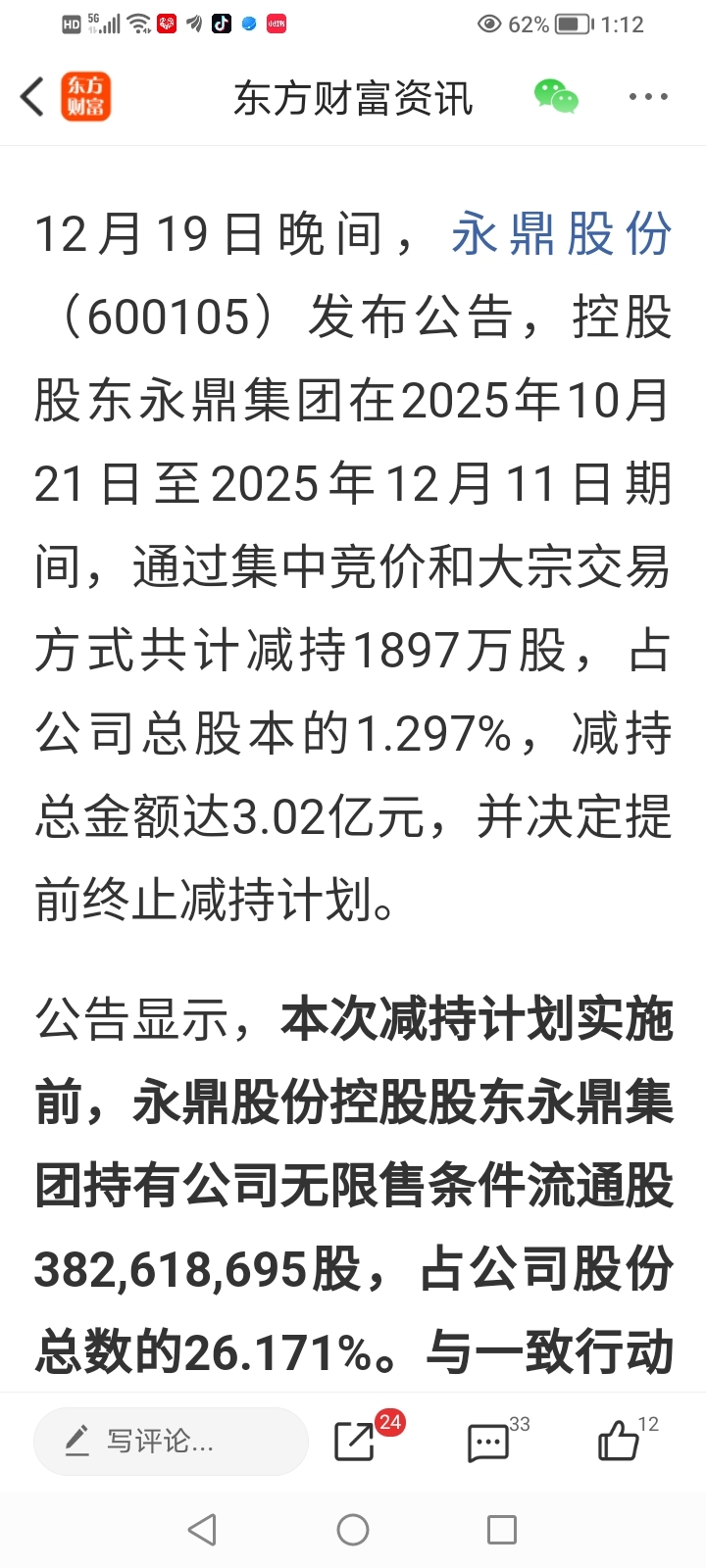 大股东两夫妻学习一下永鼎股份吧,提前结束减持股份,股价马上大幅度上涨,你们为自己