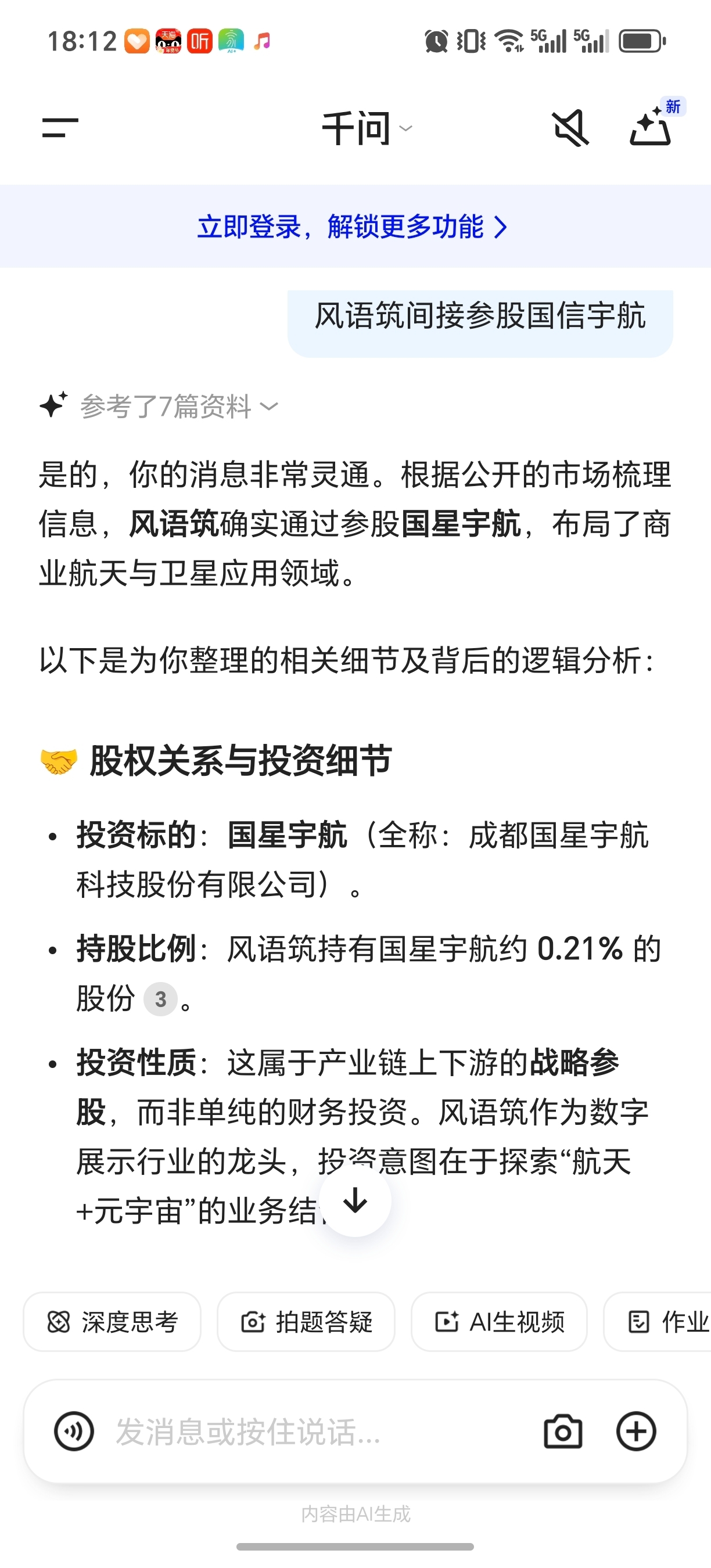 $风语筑(SH603466)$ 此公司拥有很多热点:1.商业航天方面,参股国星宇航;2.脑机接口方面,和强脑科技合作;3.人形机器人方面,成立“具身智能研究院”,和松延动力、智元机器人、宇树机器人等大厂合作。可惜就是不涨,都是大股东减持惹得祸!