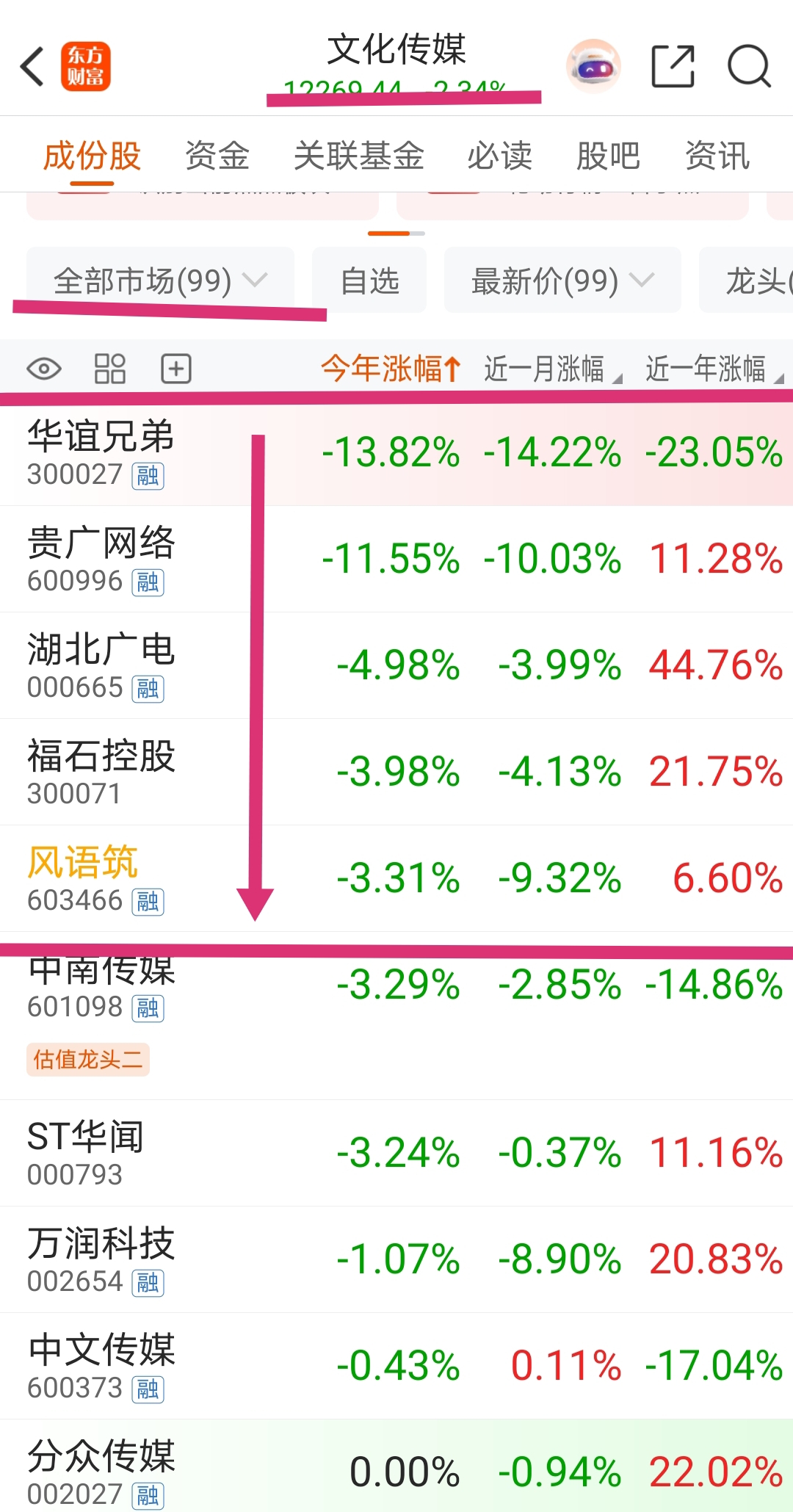 文化传媒板块总共99家上市公司,风语筑今年涨跌帽排在倒数第5,这情况下还有什么理