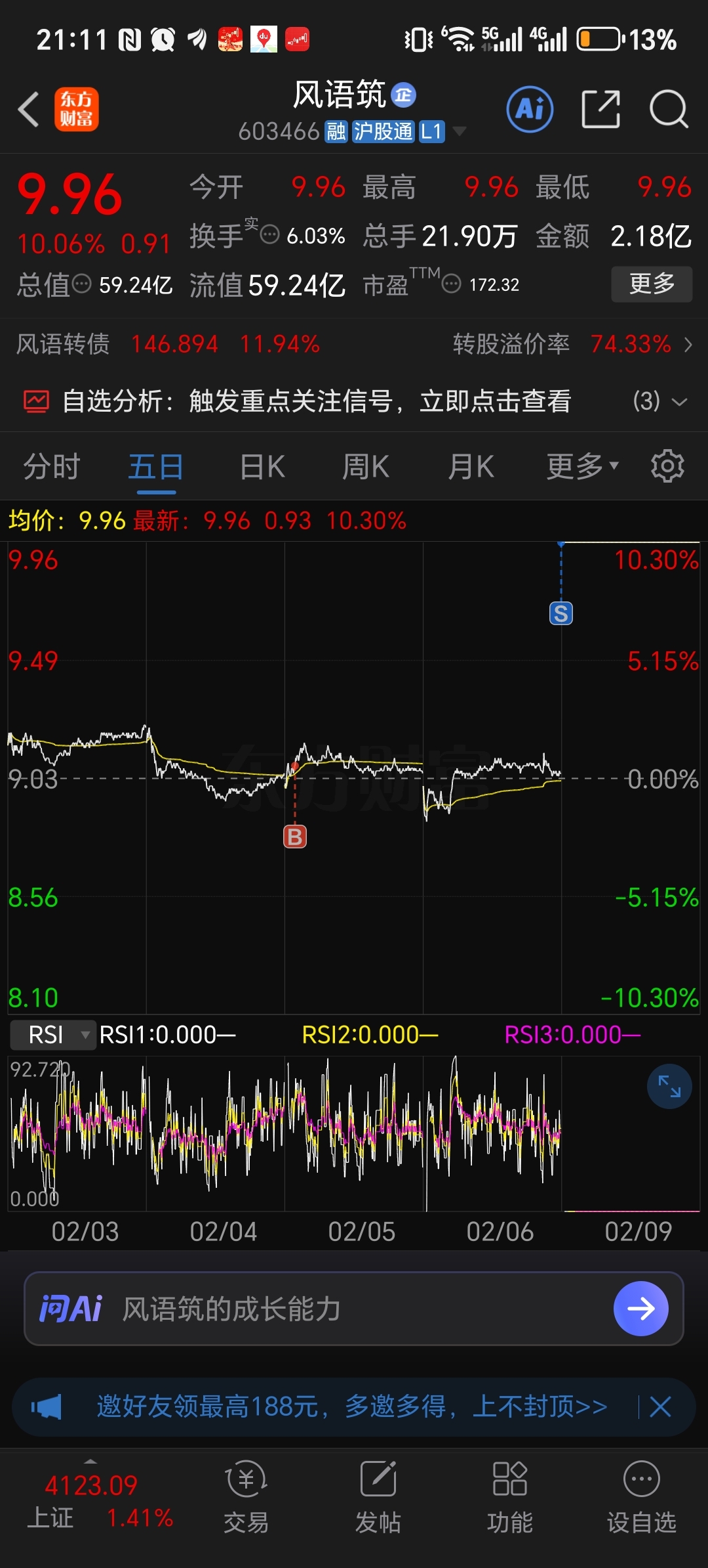$风语筑(SH603466)$ 重大利好,我被洗了一半