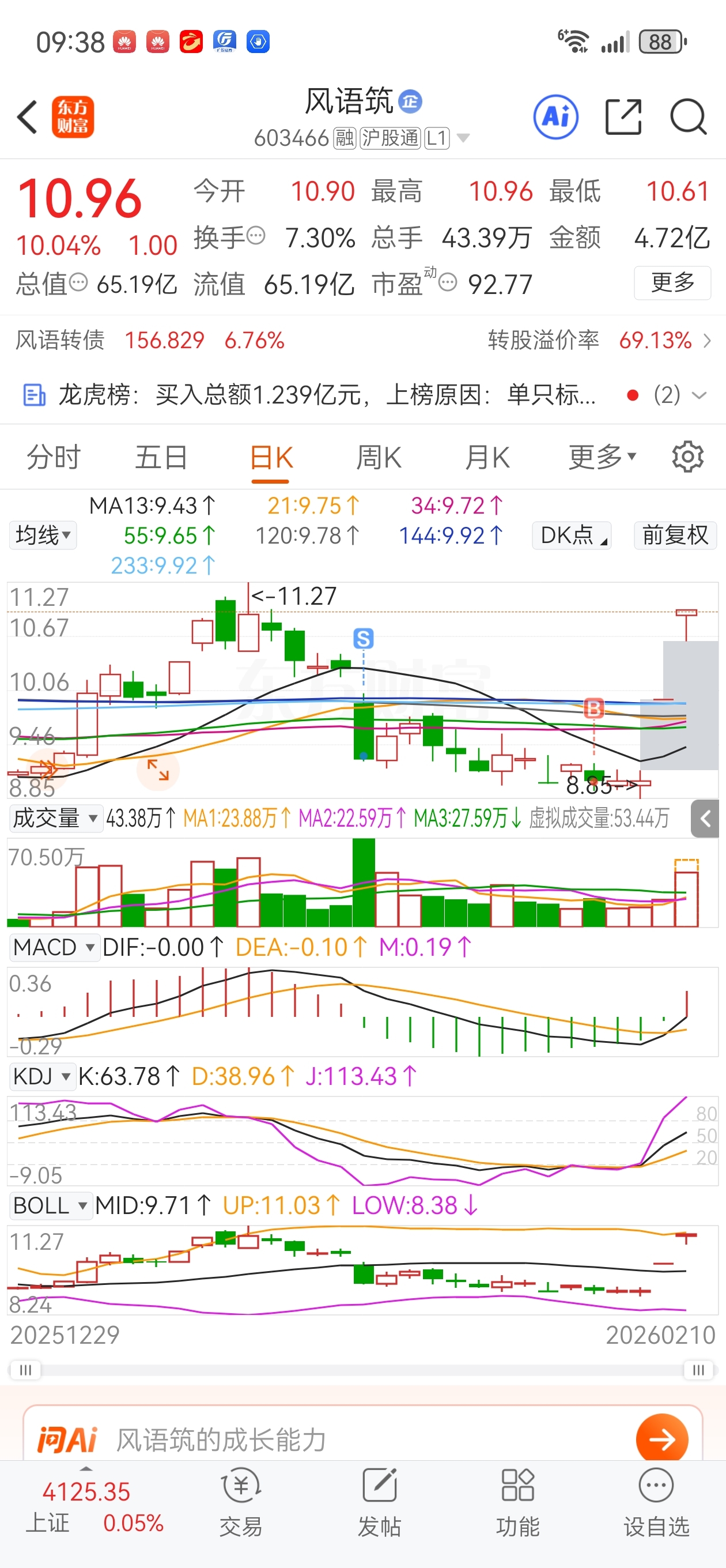 $风语筑(SH603466)$ 感谢主力!在放量下跌那天割肉,后来看到有差价竟然在下跌趋势中把它接回来了