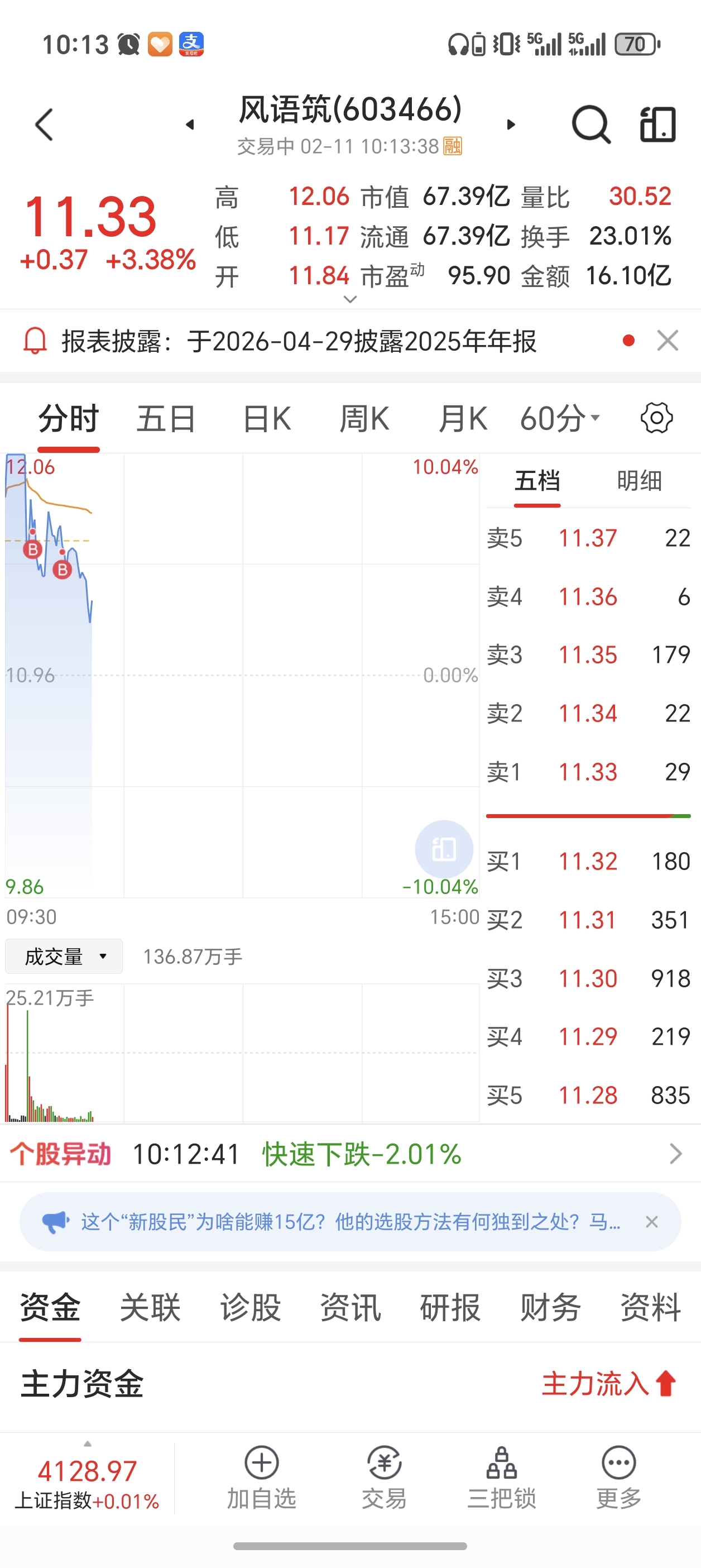 $风语筑(SH603466)$ 上大当