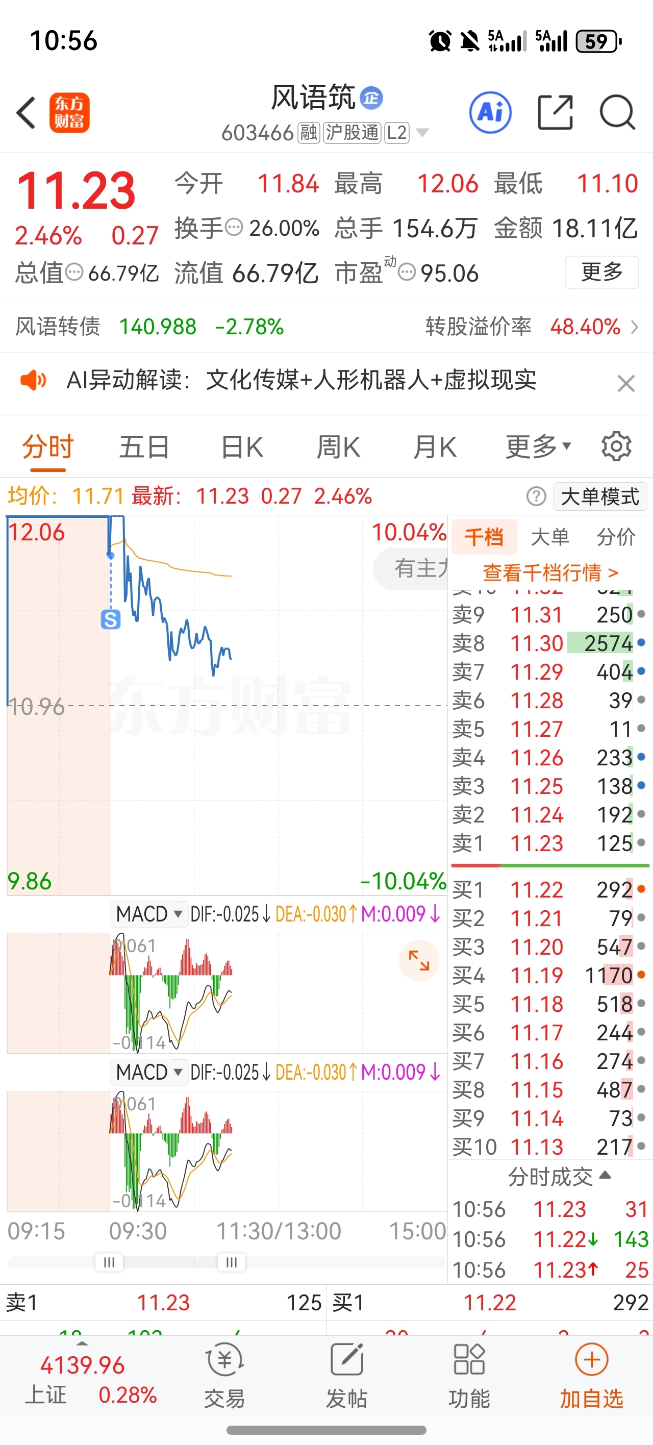 $风语筑(SH603466)$ 开盘就卖了,还以为自己卖飞了