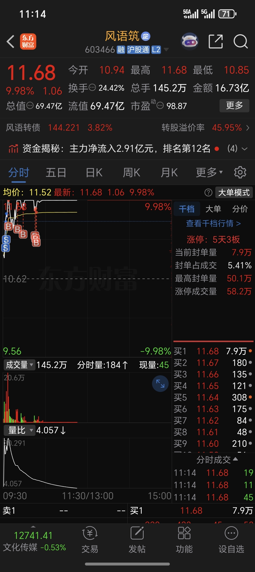 $风语筑(SH603466)$ 感谢主力,年后请别让我坠落