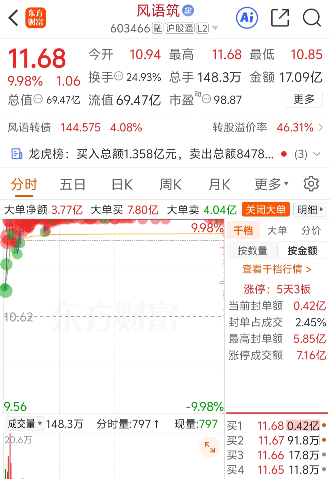 早盘风语筑跟掌阅同时大单买入,掌阅挂低几毛没买成、涨停;风语筑抛压大,令我迟疑了