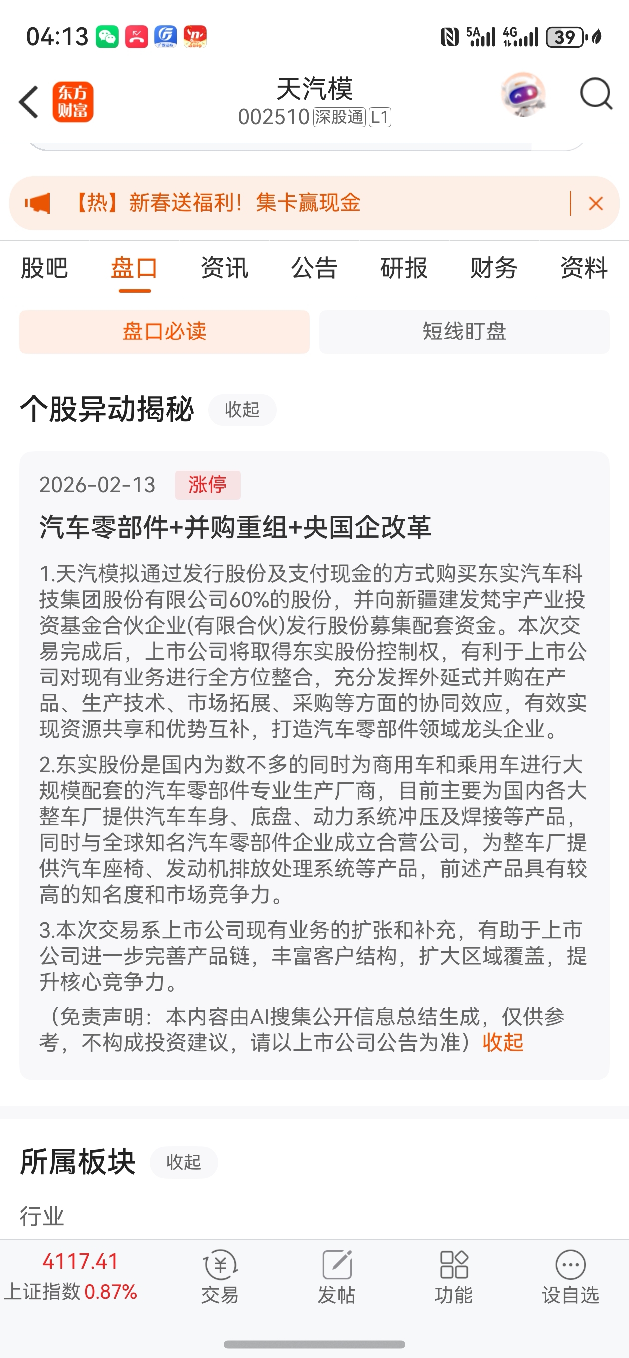 温馨提示: 1.根据《证券法》规定,禁止编造、传播虚假信息或者误导性信息,扰乱证券市场;2.用户在本社区发表的所有资料、言论等仅代表个人观点,与本网站立场无关,不对您构成任何投资建议。用户应基于自己的独立判断,自行决定证券投资并承担相应风险。《东方财富社区管理规定》