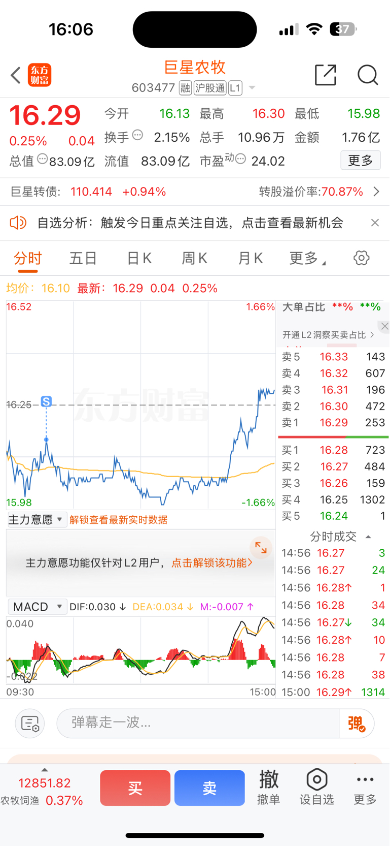 $巨星农牧(SH603477)$ 完了,卖飞了