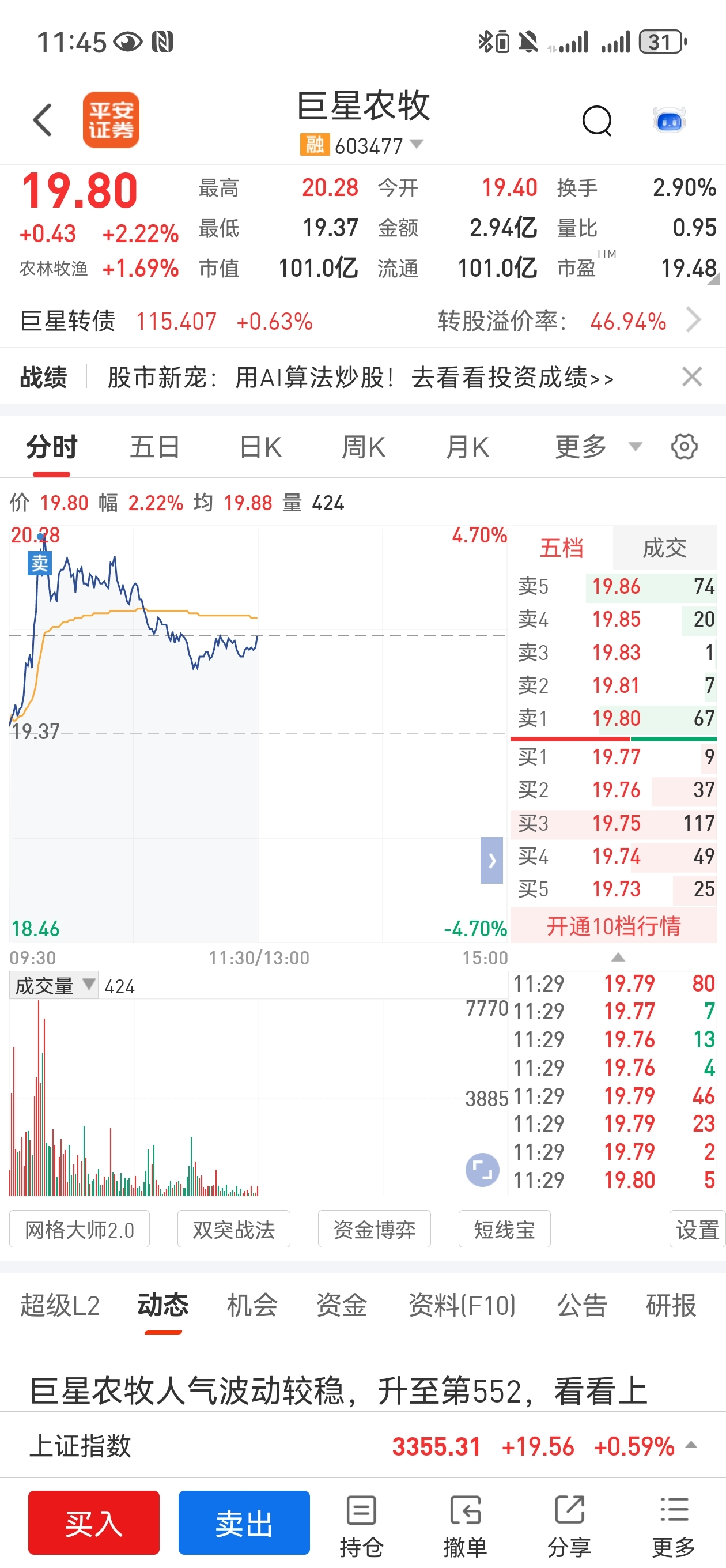 $巨星农牧(SH603477)$ 昨天19.37买的早上已T出