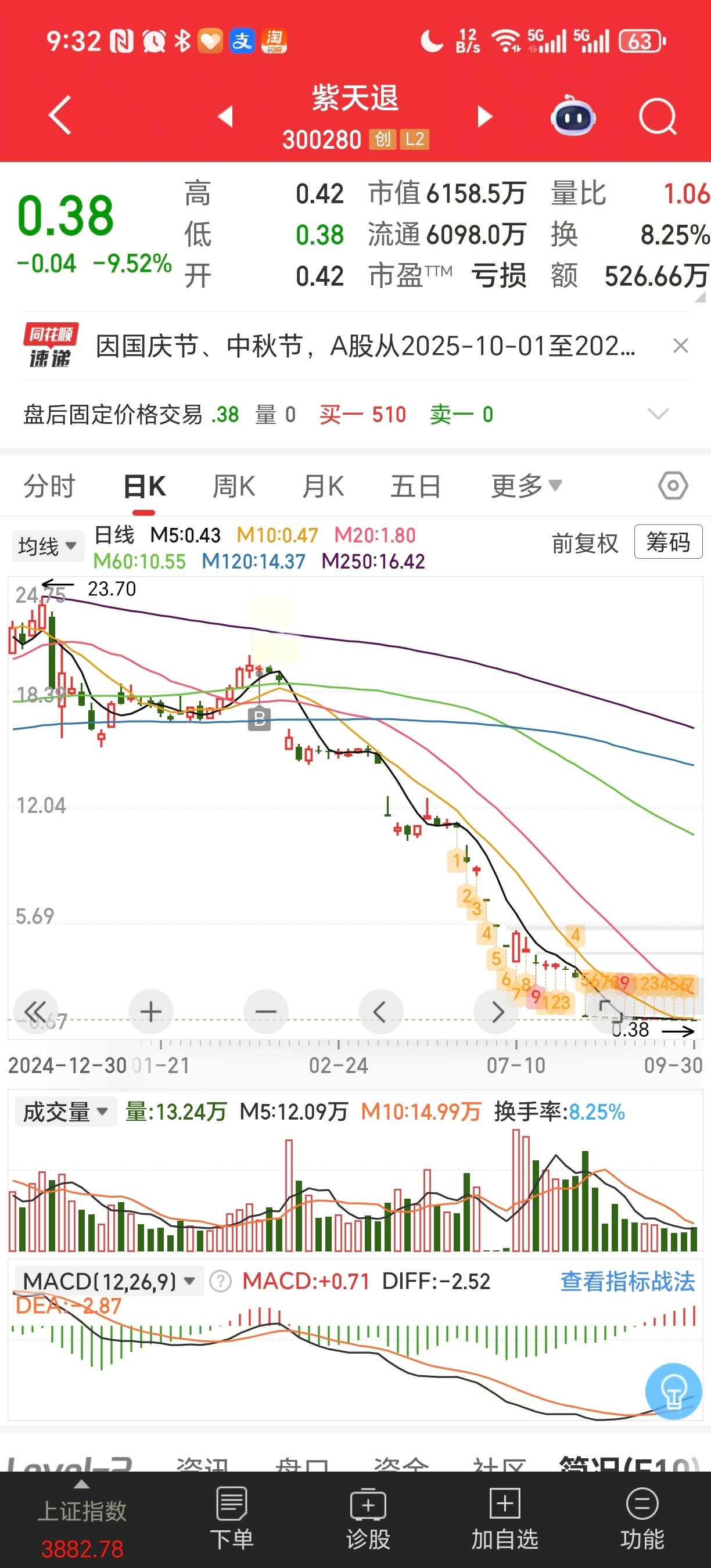 $巨星农牧(SH603477)$ 走势有点像啊,20万变3000。还好,买进之后从不补仓。