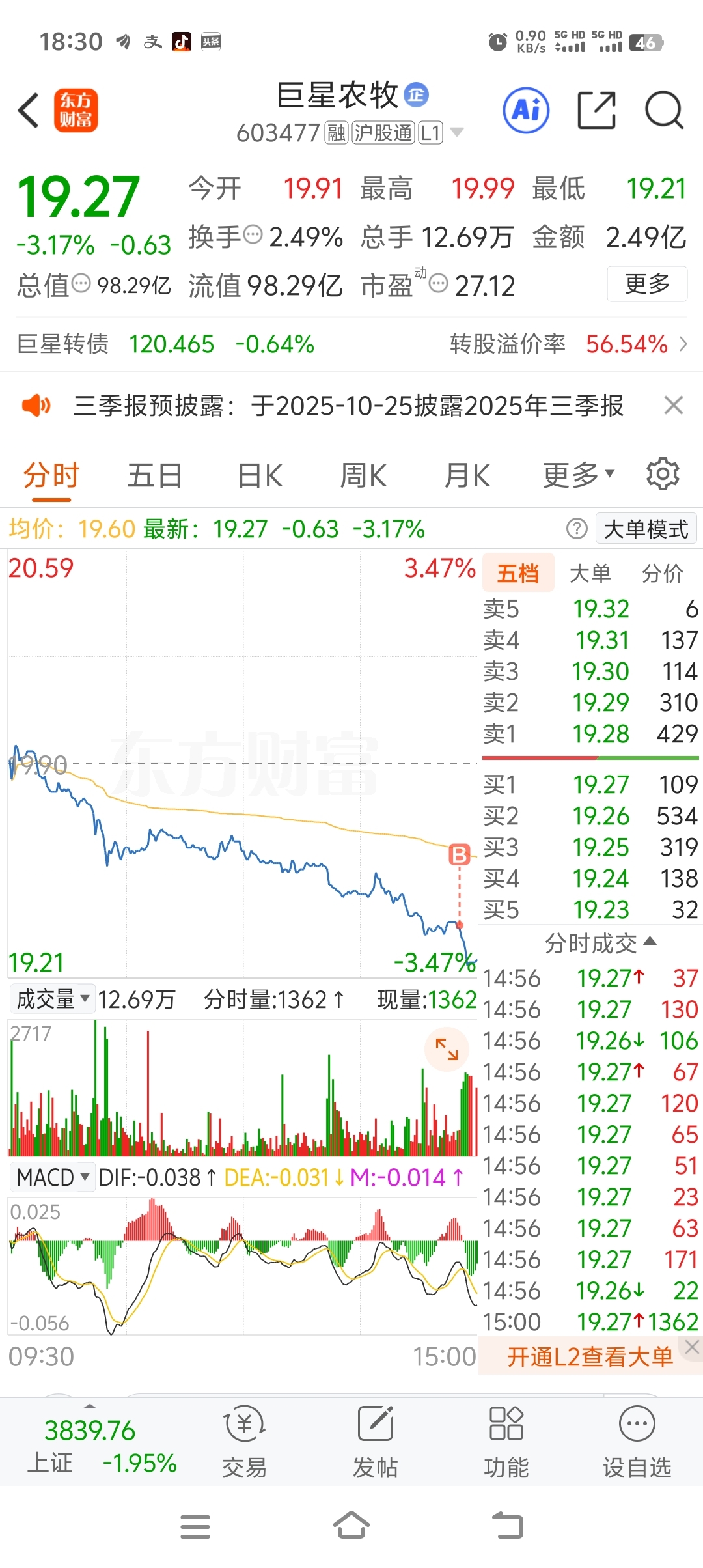 $巨星农牧(SH603477)$ 都怪我,我一买它就加速下跌