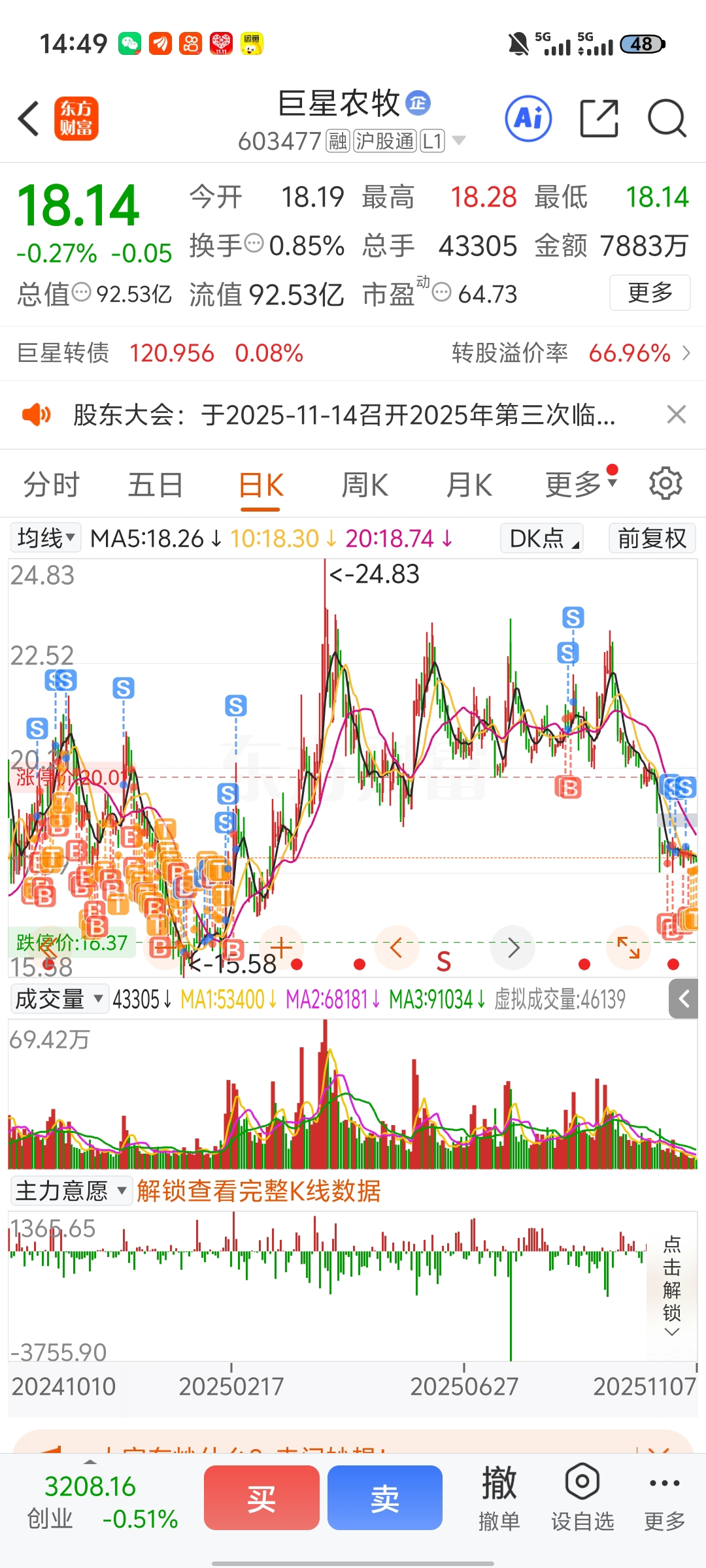 $巨星农牧(SH603477)$ 唉 又和它杠上了 不知道这次得亏多少