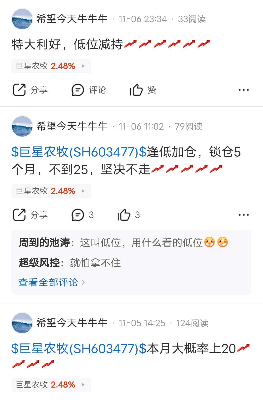 $巨星农牧(SH603477)$ 以贴为正