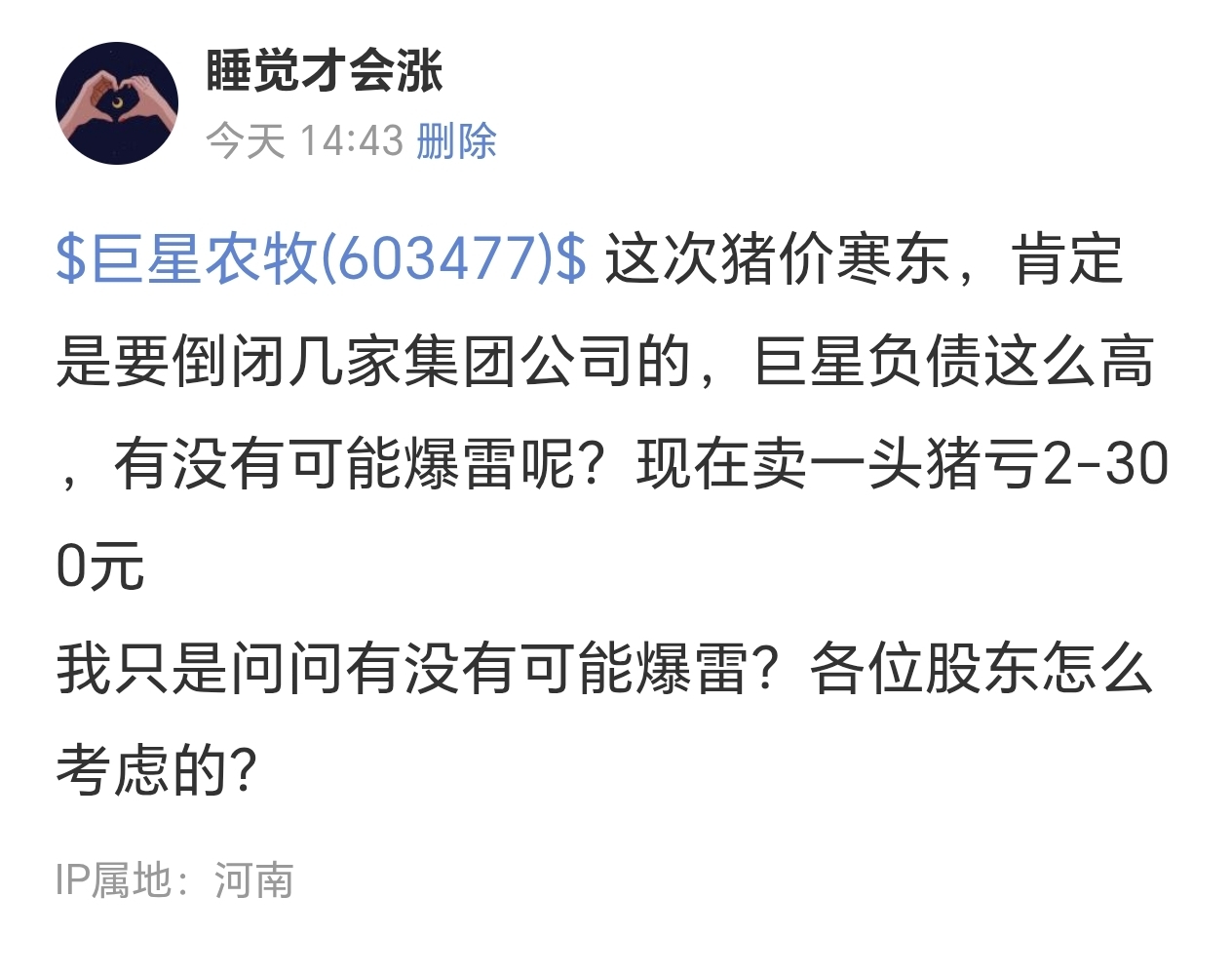 $巨星农牧(SH603477)$