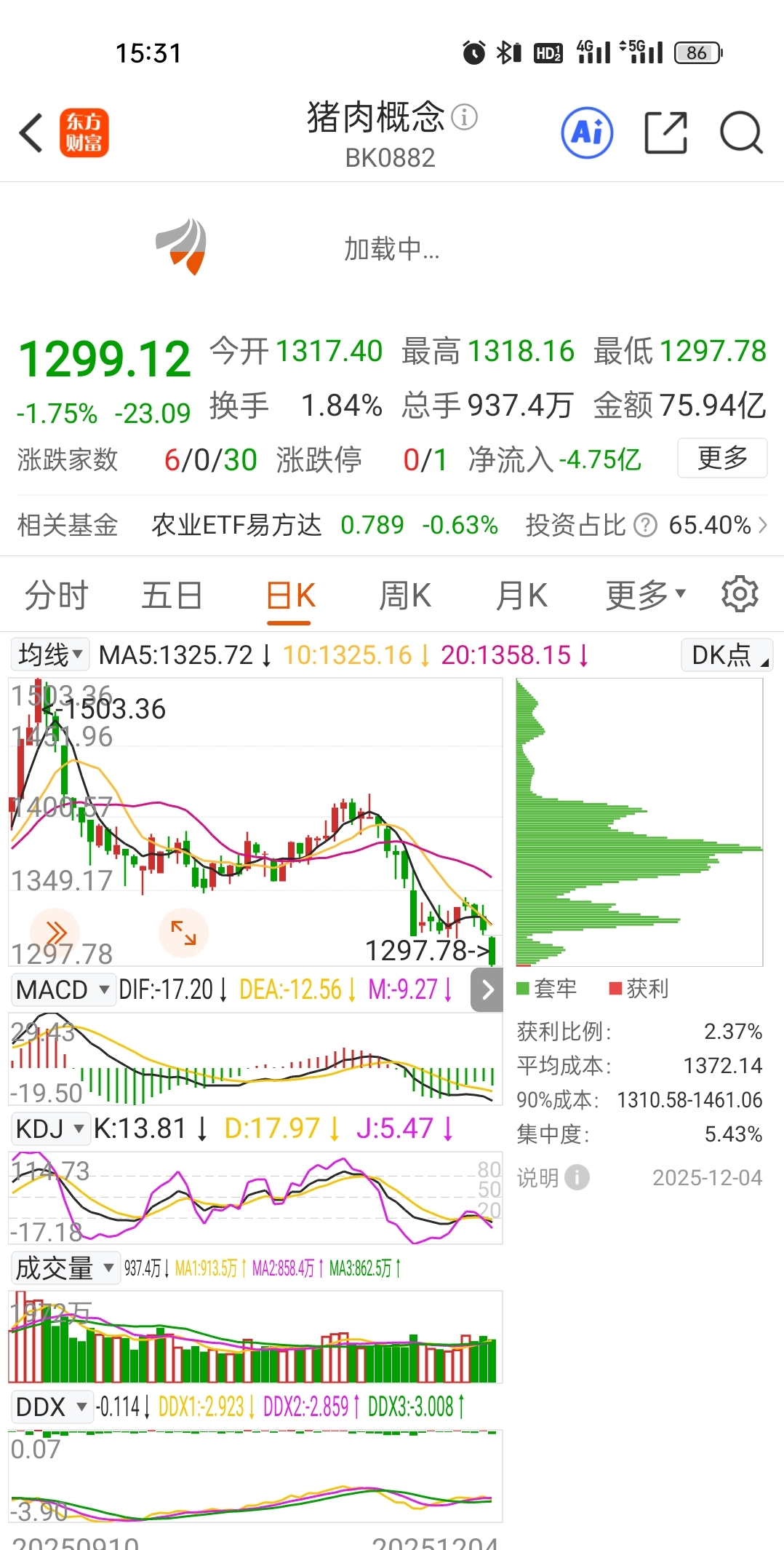 猪肉概念股筹码盈利比例快为0,只是巨星又是里面跌最狠的,板块惨+巨星更惨,能有好