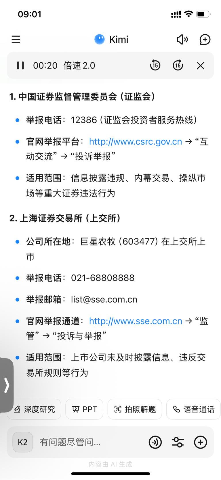 $巨星农牧(SH603477)$ 根据搜索结果,巨星农牧近期确实存在股价下跌及信息披露违规行为,并已被监管部门采取警示措施。如果您发现该公司存在其他股价操纵、内幕交易、信息披露违规等问题,可向以下监管部门举报: