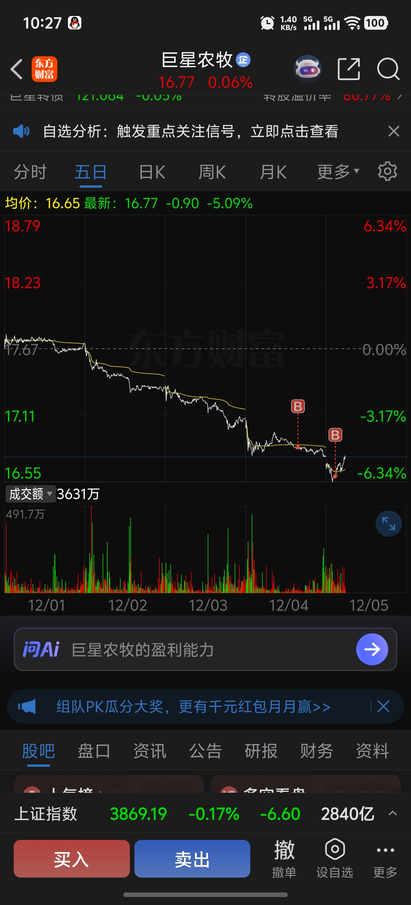 $巨星农牧(SH603477)$ 今天补一成仓,等放量再加仓