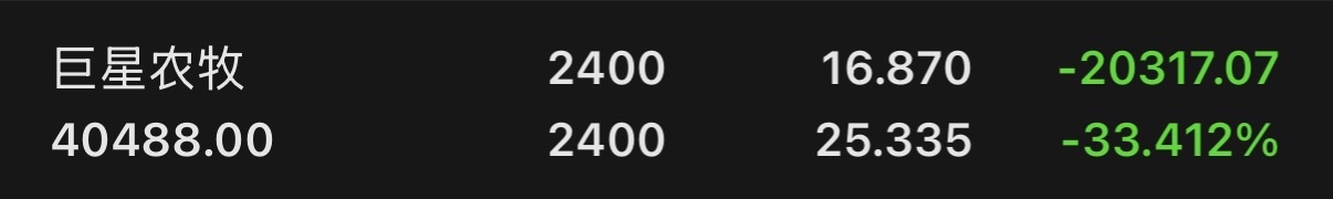 $巨星农牧(SH603477)$ 大哥,别再跌了,都亏了30多点了