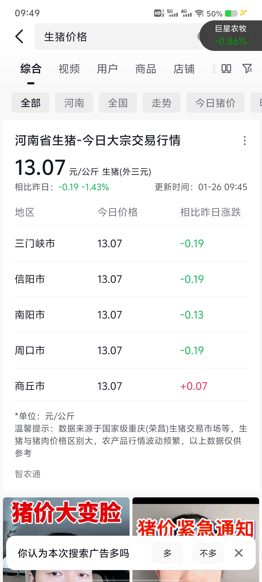 生猪今日价格,13为分界线。13以上才能盈利。可惜巨星不跟猪肉走。