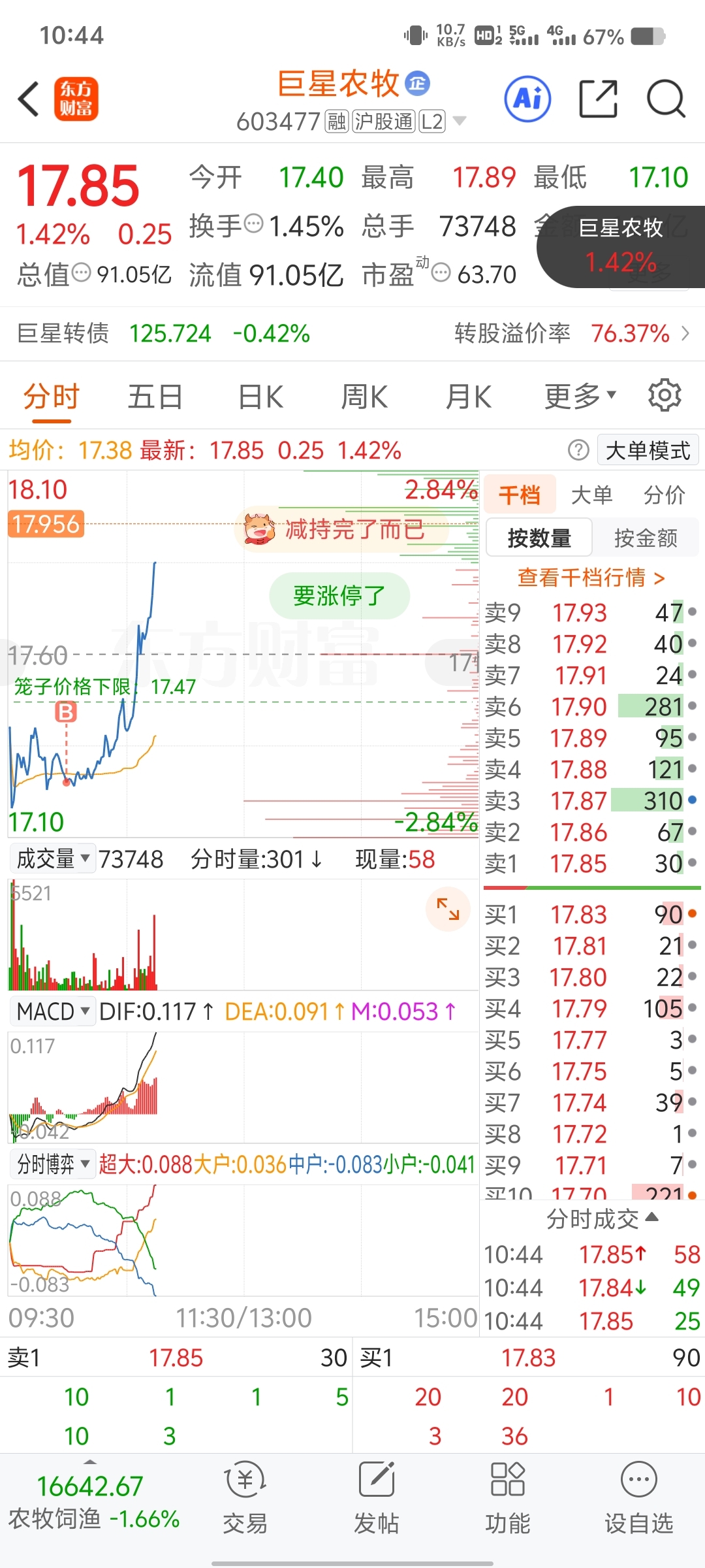$巨星农牧(SH603477)$ 又到成本线了,要不要走?