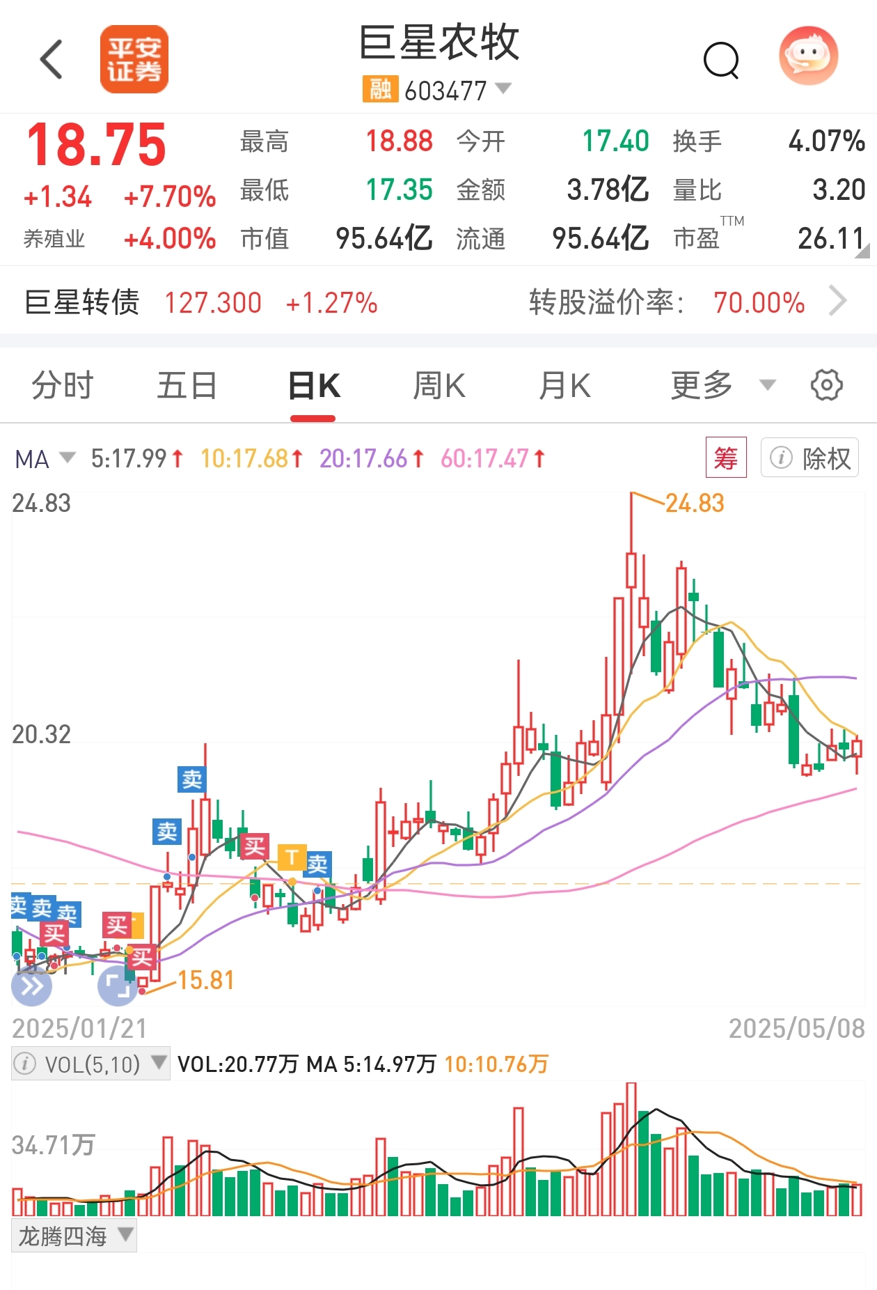 $巨星农牧(SH603477)$ 去年从14涨到24,今年涨到22,不过分吧