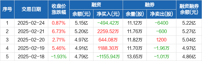 科沃斯:融资净偿还494.42万元,融资余额5.15亿元(02-24)