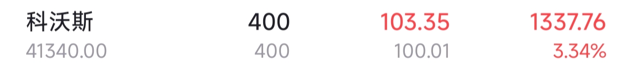 $科沃斯(SH603486)$ 昨天100.01买的400股,今天103.35元卖了,收益 1337元,下午怕大跌回调,今天大盘跌了。#炒股日记#