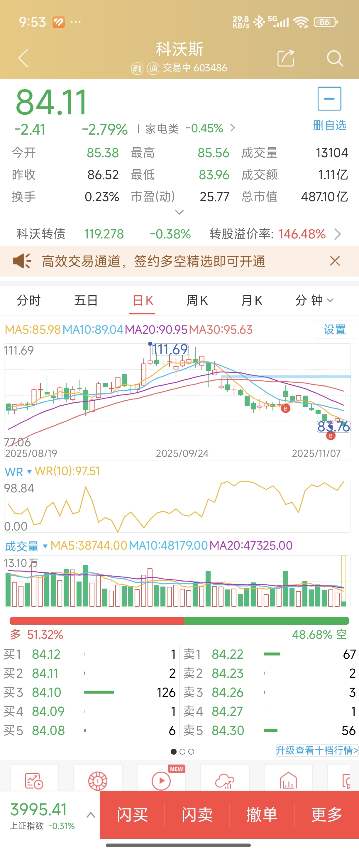 $科沃斯(SH603486)$ 受不了你 ,天天跌, 今天开盘-2.6割了,天天缩量。