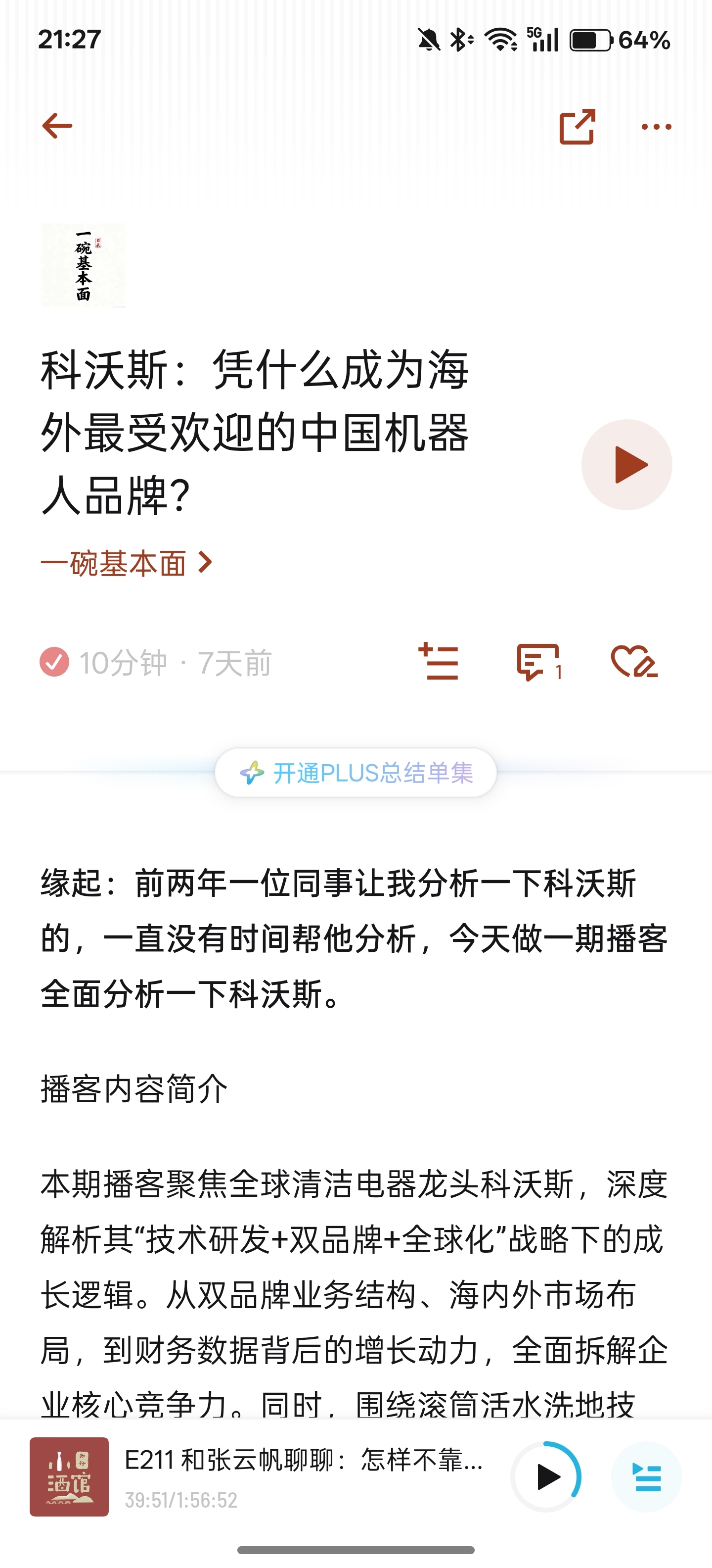 $科沃斯(SH603486)$ 小宇宙app,主理人“一碗基本面”,前两天发的一篇关于“科沃斯”的播客挺好的,分析的很全面,可以去听听。