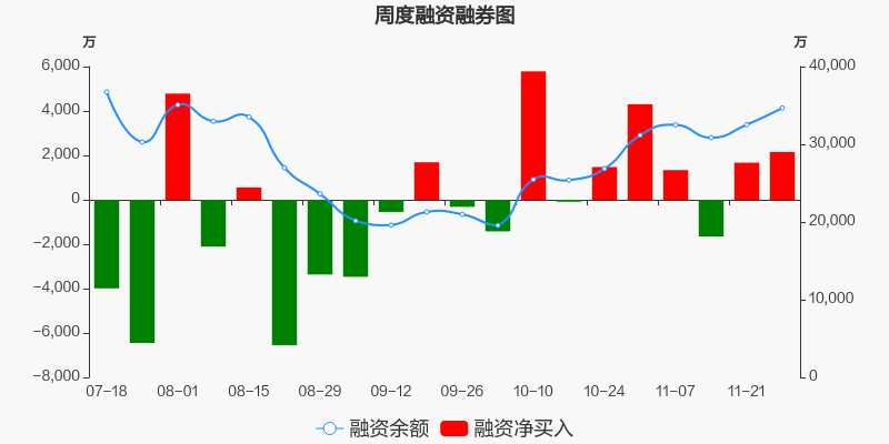 科沃斯本周(2025/11/24-2025/11/28)累计涨幅达0.37%,截至11月28日最新股价报收78.58元。从增量上来看,11月24日至11月28日融资买入交易规模1.05亿元,融资偿还规模8318.11万元,期内融资净买入2153万元。从存量上来看,截止11月30日,科沃斯融资融券余额3.59亿元,其中融资余额规模3.47亿元,融券余额规模1222.39万元。