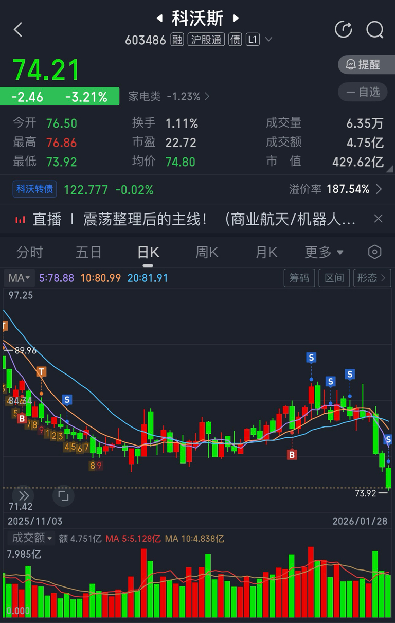 $科沃斯(SH603486)$ 清仓了,等跌到60以内,我再来找你。