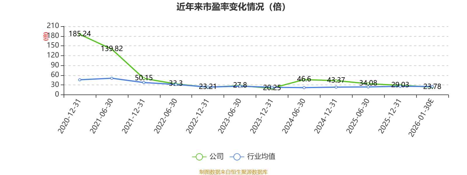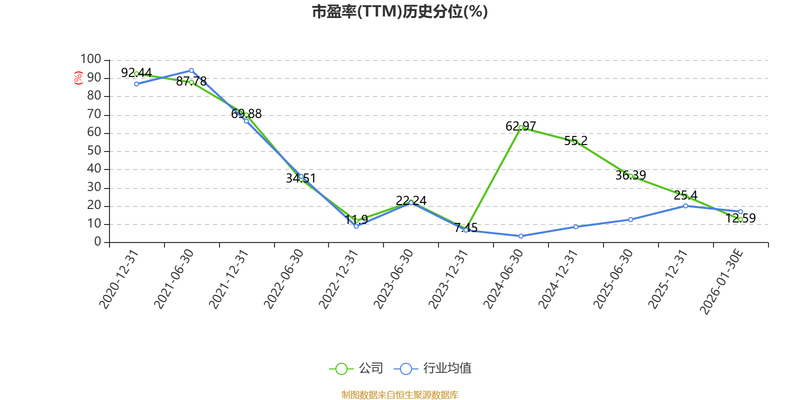 以本次披露业绩预告均值计算,公司近年市盈率(TTM)图如下所示: