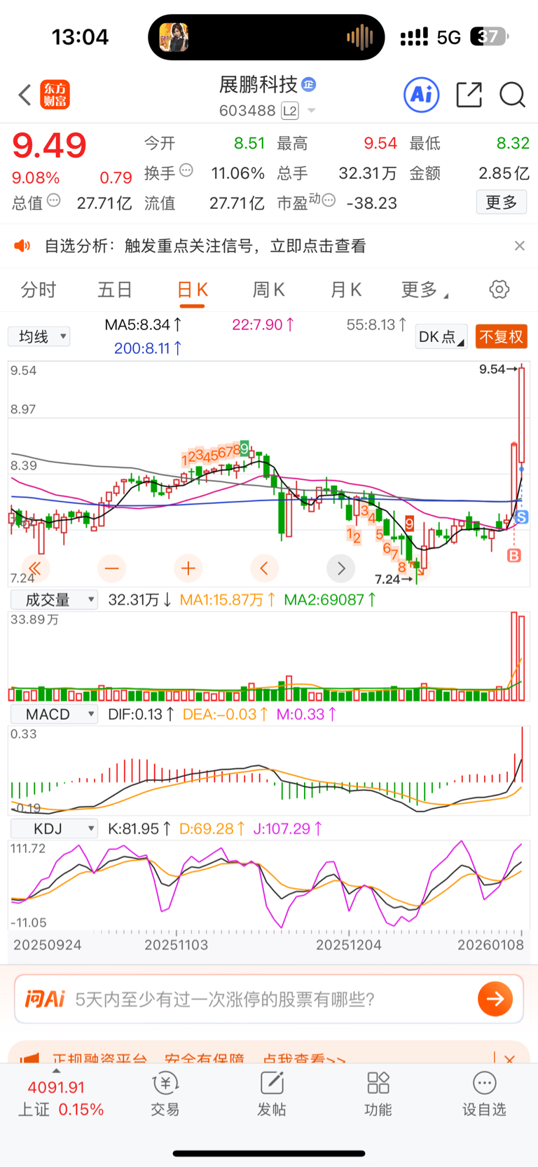 $展鹏科技(SH603488)$ 难受啊,马飞