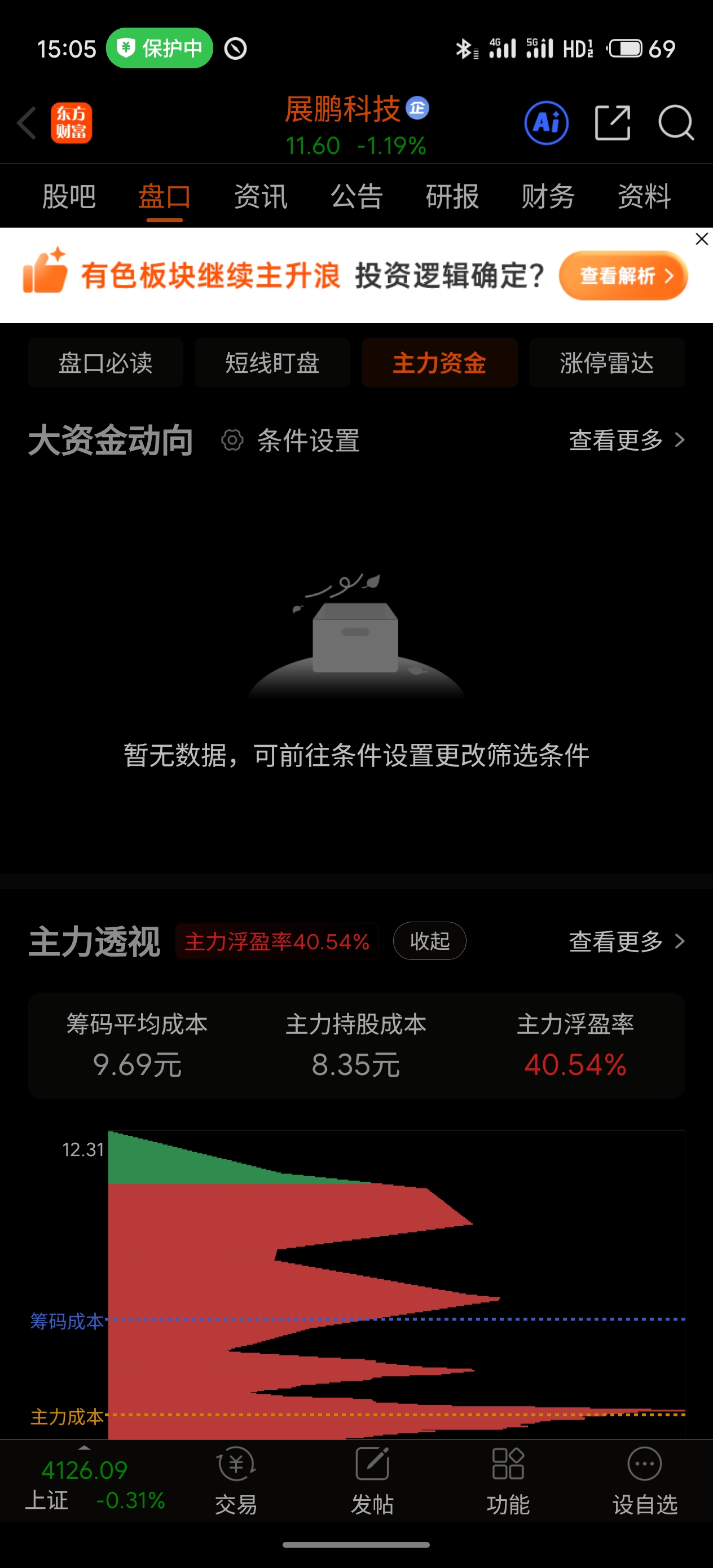 $展鹏科技(SH603488)$ 拿好准备起飞。没有大资金流出。