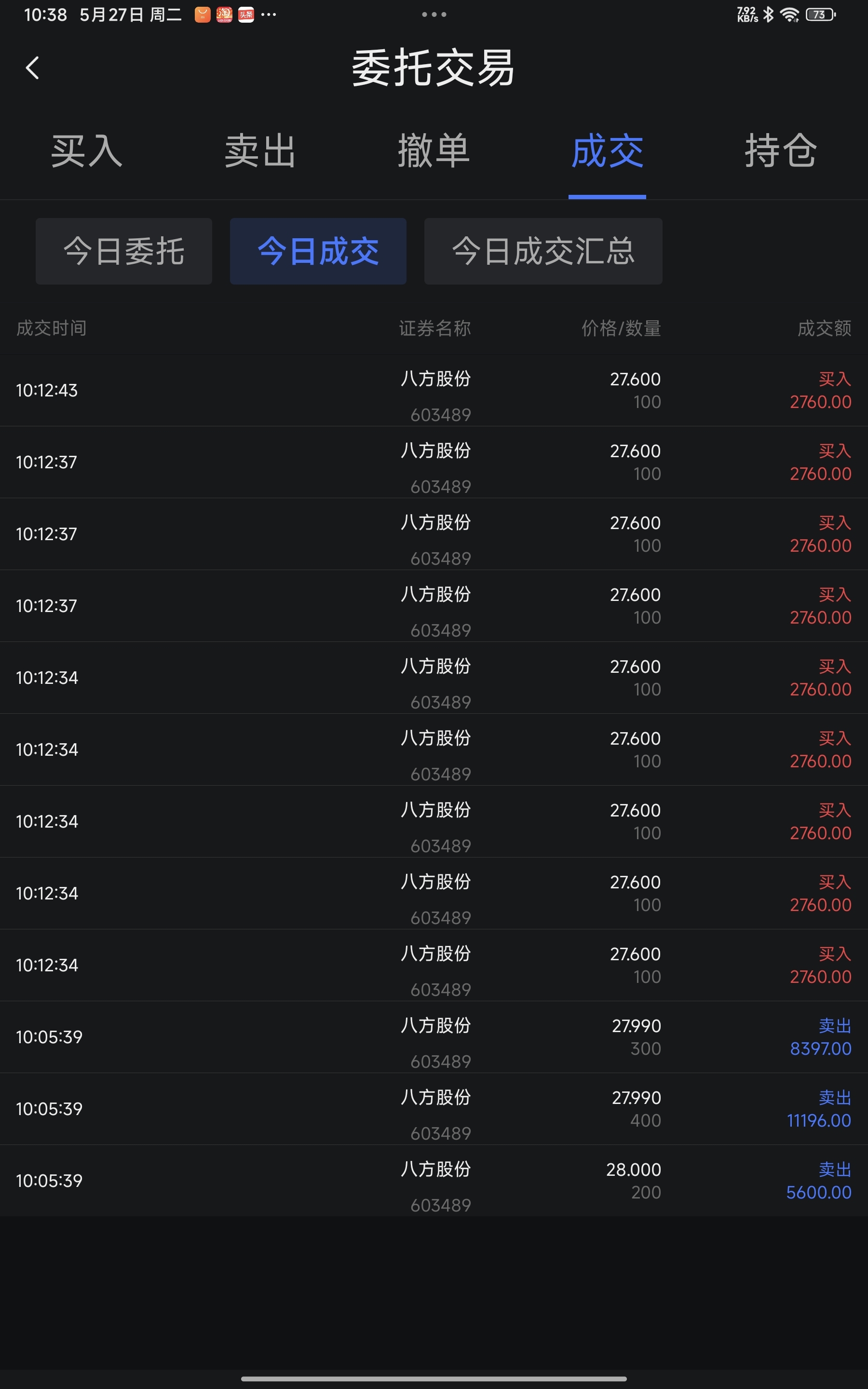 $八方股份(SH603489)$ 我看好你昨天买一点今天t0