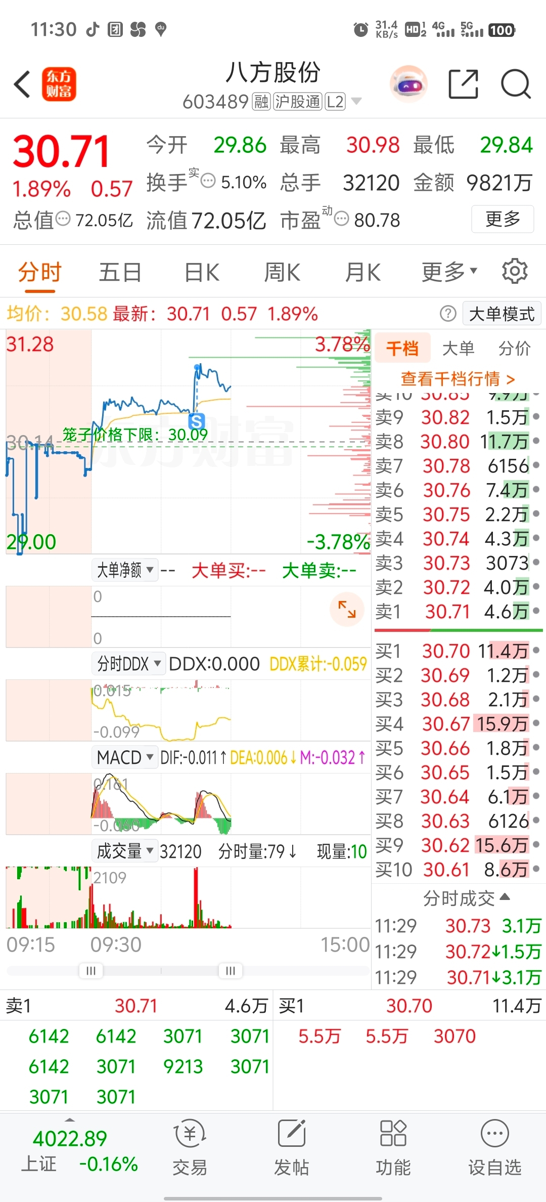 $八方股份(SH603489)$ 你应该不会让我失望吧,这跑的应该刚刚好吧,倒吃几个点。
