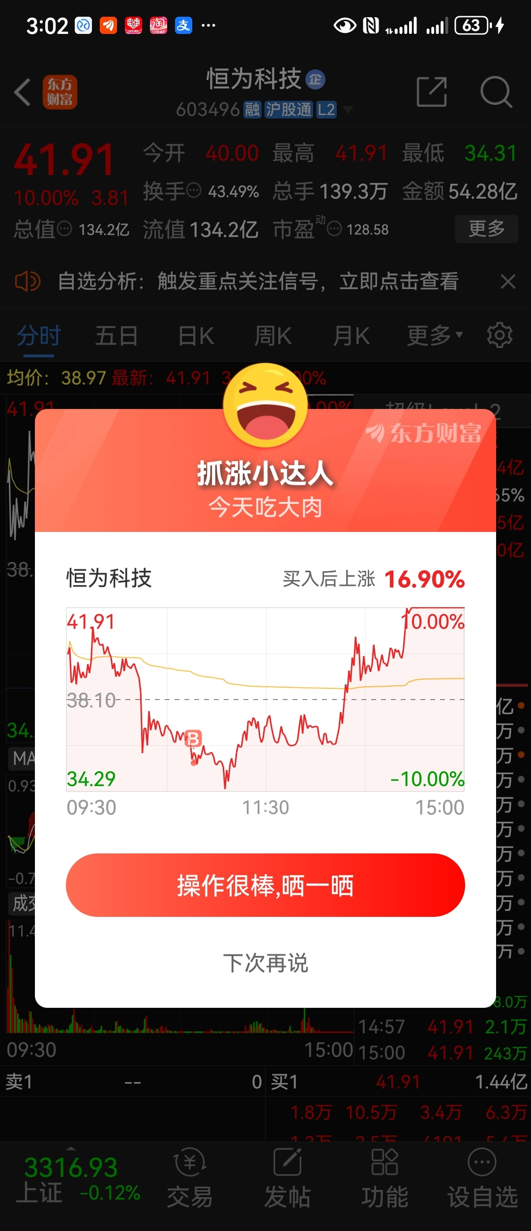 $恒为科技(SH603496)$ 华丰股份尾盘天地大面,主动让位给恒为科技成为市场最高连板,辨识度满满,市场所有眼球都在它的身上,而且才四板位置不高,明天就看市场是否选择这个龙头了。