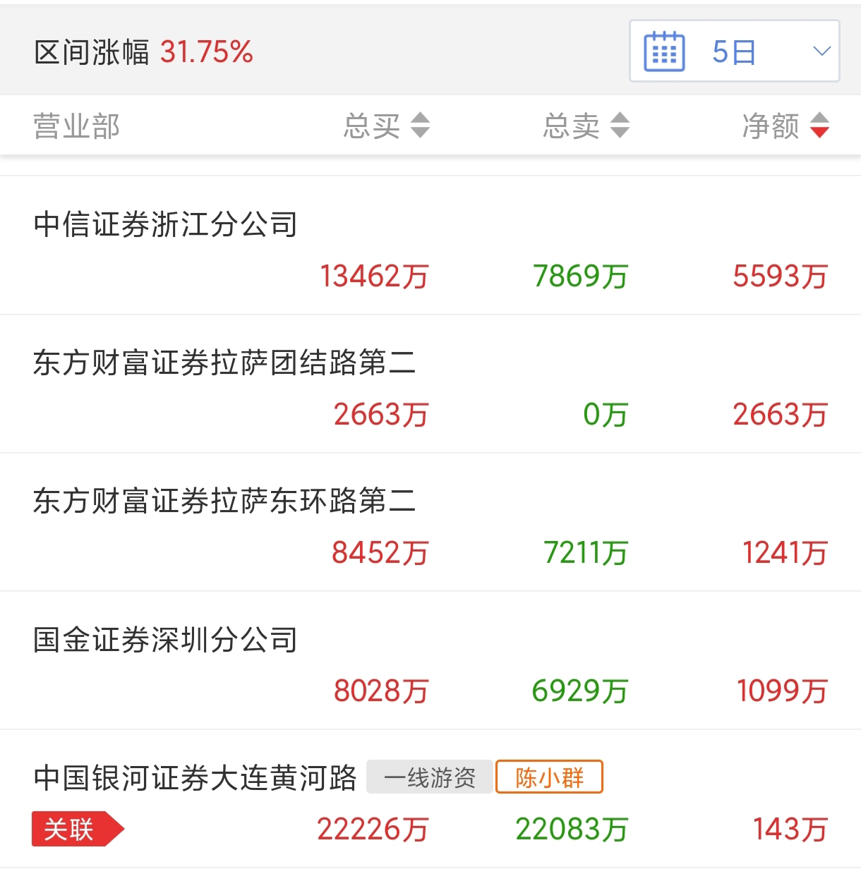 陈小群一家独大走了是好事,2.2亿谁敢接盘啊。人家跌停卖的也是赚钱出来的,不亏是大佬。浙江分公司有五千多万锁仓了,明天看好反包涨停。这股人气高,股性也不错。