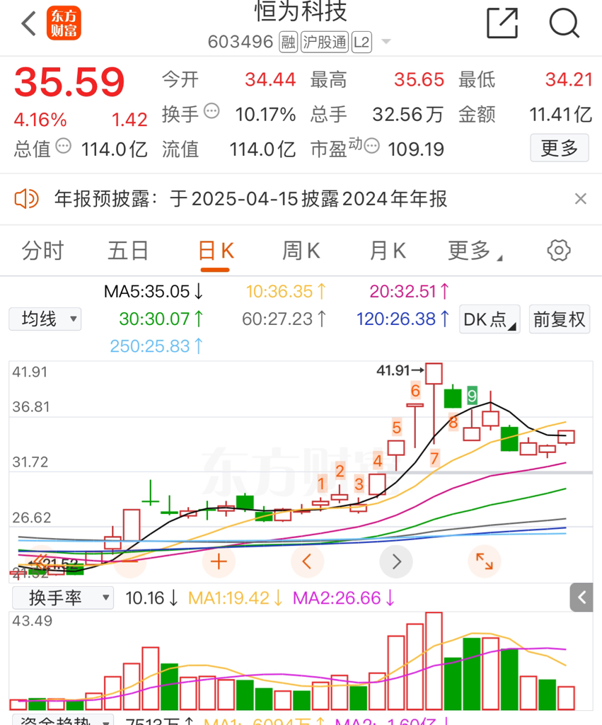 $恒为科技(SH603496)$ 老鸭头形态,100不成问题