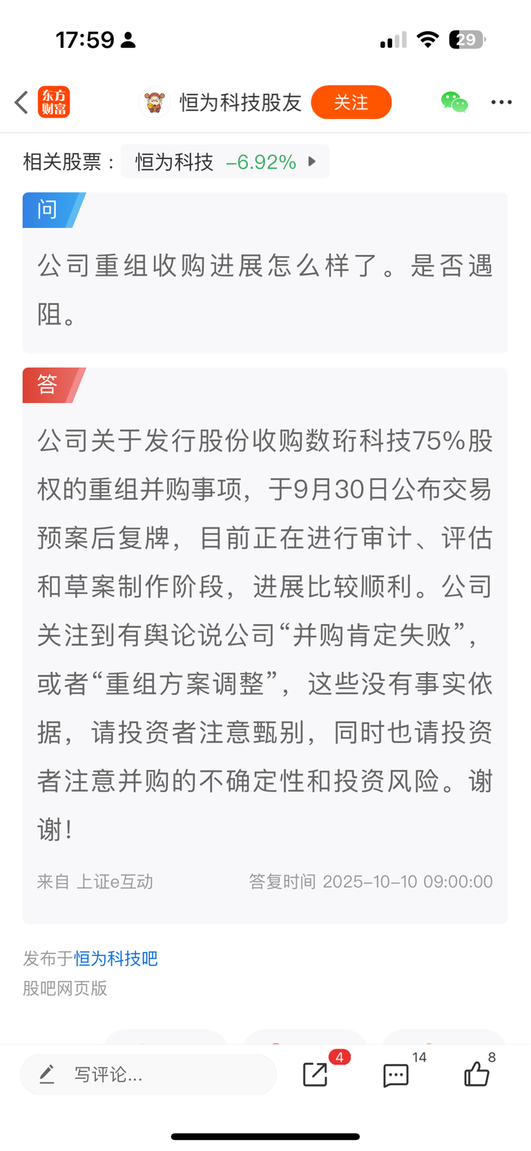 $恒为科技(SH603496)$ 辟谣了,进展顺利,下周一涨停