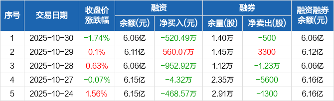 恒为科技:融资净偿还520.49万元,融资余额6.06亿元(10-30)