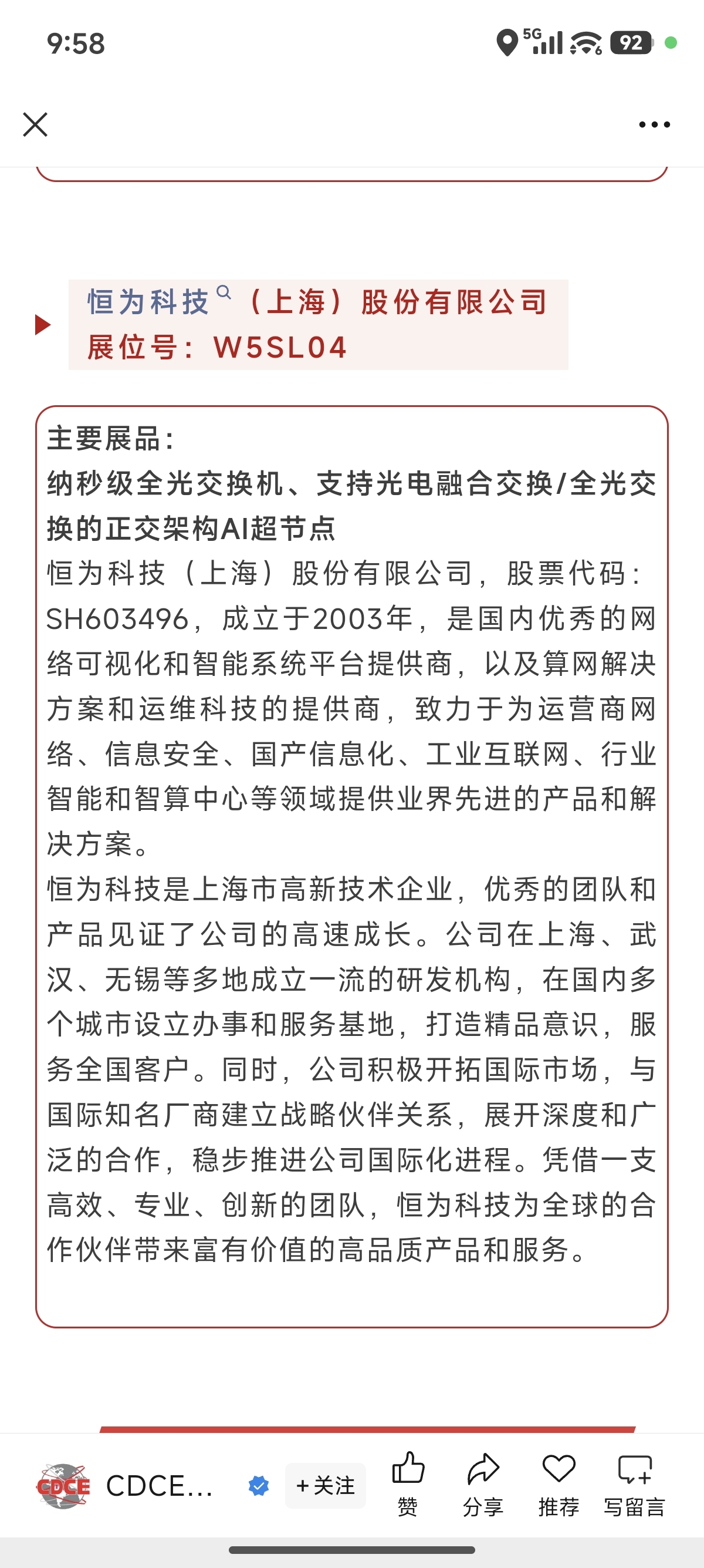 $恒为科技(SH603496)$ 先不关注收购的事了,我们发一些恒为原本的利好吧,ocs光交换机产品和ai超节点的展示,以前没这个收购,有原本的这些利好股价都能上30块的。11月要求不高,先回到30吧。